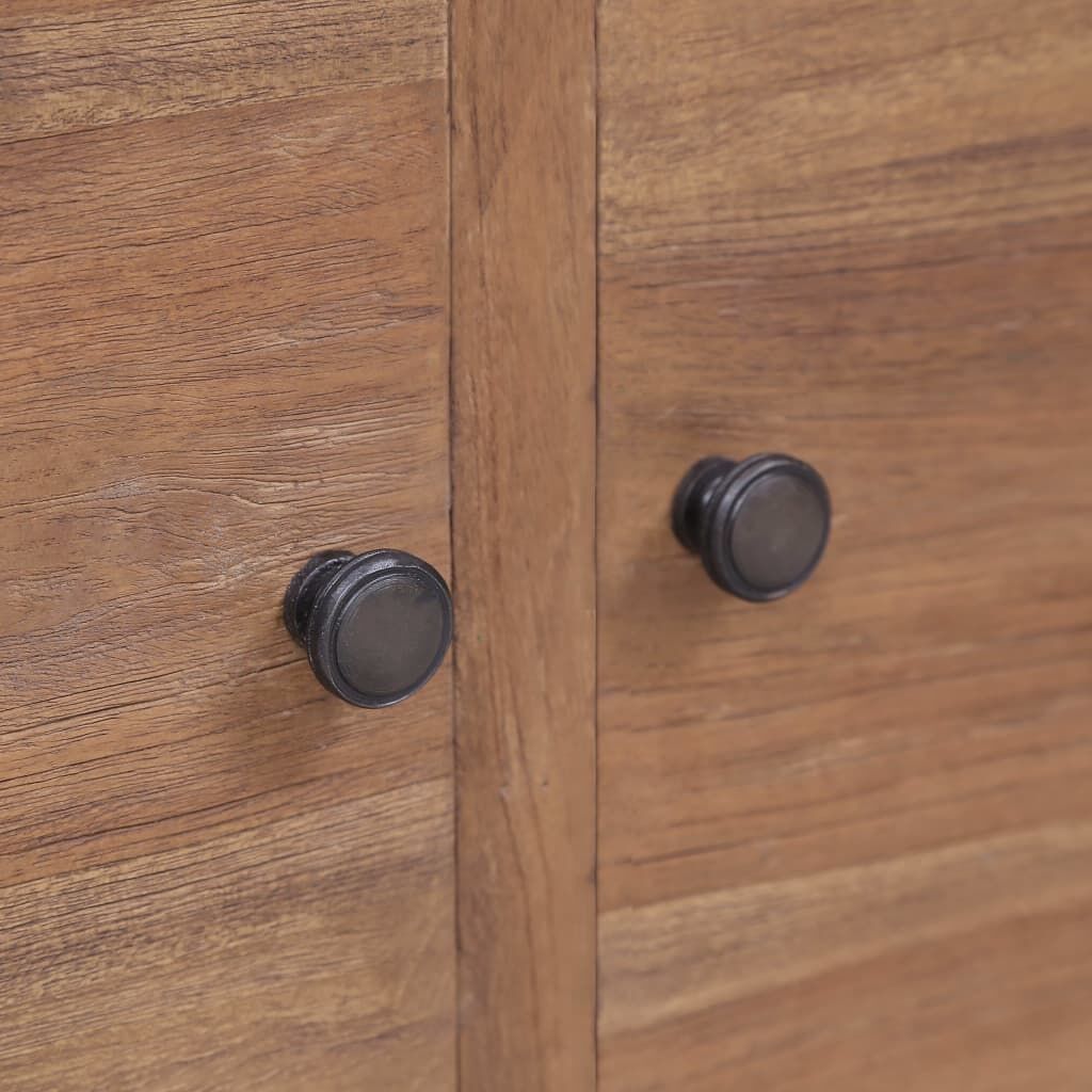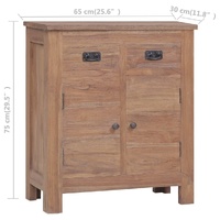 $237.59Featuring a colonial style, this solid wooden sideboard is meant to be decorative and a practical addition to your decor. The cabinet is made of solid teak wood with recycled finish and natural colour, which is known for its exceptional strength. Every step of the process is carried out with the greatest care, be it polishing, painting or lacquering. The cabinet has a sturdy hardwood top, on which you can place things you may need. Designed with 2 doors and 2 drawers, the sideboard keeps your magazines, books, DVDs and multimedia devices well organised and within reach. Additionally, the drawer is designed with brass handle with antique coating for easy opening and closing. Important note: Colours and grains may vary from piece to piece, making each of our cabinets unique. The delivery is random, ensuring the exclusivity and individuality of your product.