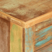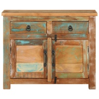 This wooden sideboard, featuring a timeless look, is meant to be an excellent addition to your home. Solid reclaimed wood: The storage cabinet is mainly made of solid reclaimed wood. Solid reclaimed wood consists of reused timbers such as teak, mango wood, pinewood, and beech. These materials are recycled from old buildings such as factories, sheds, and boats.Ample storage space: The sideboard cabinet offers ample storage space for keeping your various daily essentials well organised and within easy reach.Stable and sturdy top: The top of the side cabinet is perfect for displaying your decorative items, picture frames, and potted plants. Warning:To prevent it being overturned, this product must be used with the provided wall attachment device. Good to know:Each item is unique with variations in colours and grains. The delivery is random, ensuring the exclusivity and individuality of your product.