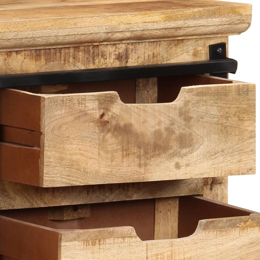 $260.06This antique-style wooden sideboard exudes a vintage charm and will make a timeless addition to your interior. This retro drawer cabinet is made of solid mango wood, a hardwood with dense grains. Rough mango wood not only has the strength to bear the weight, but also stands the wear and tear of time; as a consequence, this beautifully-designed commode is considerably stable, durable and captivating. The perfect craftsmanship guarantees that every step of the process is carried out with the greatest care, be it polishing, painting or lacquering. Additionally, this sideboard features 3 drawers and a black sliding door, providing commodious space for storing your multimedia appliances, clothing, books, as well as various other items. Important note: The wood grains vary from piece to piece, making each piece unique. The delivery is random, ensuring the exclusivity and individuality of your product.