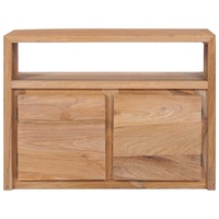 Featuring a rustic and trendy design, this solid wooden sideboard will make a decorative as well as practical addition to your decor. The cabinet is made of solid teak wood. Every step of the process is carried out with the greatest care, be it polishing, painting or lacquering. The exquisite craftsmanship and the aesthetically-appealing wood grains make every piece of furniture unique and slightly different from the next. Additionally, designed with 2 doors and an open compartment, the sideboard keeps your magazines, books, DVDs and multimedia devices well organised and within reach. Important note: Colours and grains may vary from piece to piece, making each of our cabinets unique. The delivery is random, ensuring the exclusivity and individuality of your product.