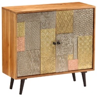 NOW $395.24This sideboard radiates a special vintage charm that will add an eye-catching piece to your home decor. This cabinet is made of solid acacia wood with a subtle honey finish, which gives it a beautiful look and warm colour. The beautiful, decorative metal details in different colour tones, as well as the antique-style handles, endow this wooden cabinet with a touch of luxurious charm. High quality craftsmanship and beautiful wood grains make every piece of furniture unique and slightly different from the next. This cupboard features 2 cabinets with doors, which provide ample storage space for your clothing, books, and various other items. Important note: The colours and wood grain may vary from piece to piece, making each dressoir unique. The delivery is random, ensuring the exclusivity and individuality of your product.