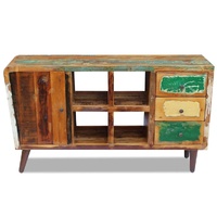 This wooden sideboard will make a unique addition to your room. Its solid wood construction makes it stable and secure to place drinks, fruit baskets or decorative items. The cabinet has four compartments, a door and three drawers to store small to medium items like photos, notepads and other necessaries. Made of reclaimed wood, the highboard is solid, durable and beautiful, and has the characteristics of different woods like teak, mango wood, acacia, recycled wood, hard wood, etc. Every piece of this furniture is unique, and slightly different from the next. Signs of wear and visible grain structure give each piece its own history and a unique look. This highboard is fully handmade. Every step of the process is carried out with the greatest care, be it polishing, painting or lacquering. Important note: Colours may vary from piece to piece, making each of our sideboards unique. The delivery is random, ensuring the exclusivity and individuality of your product.