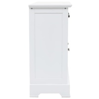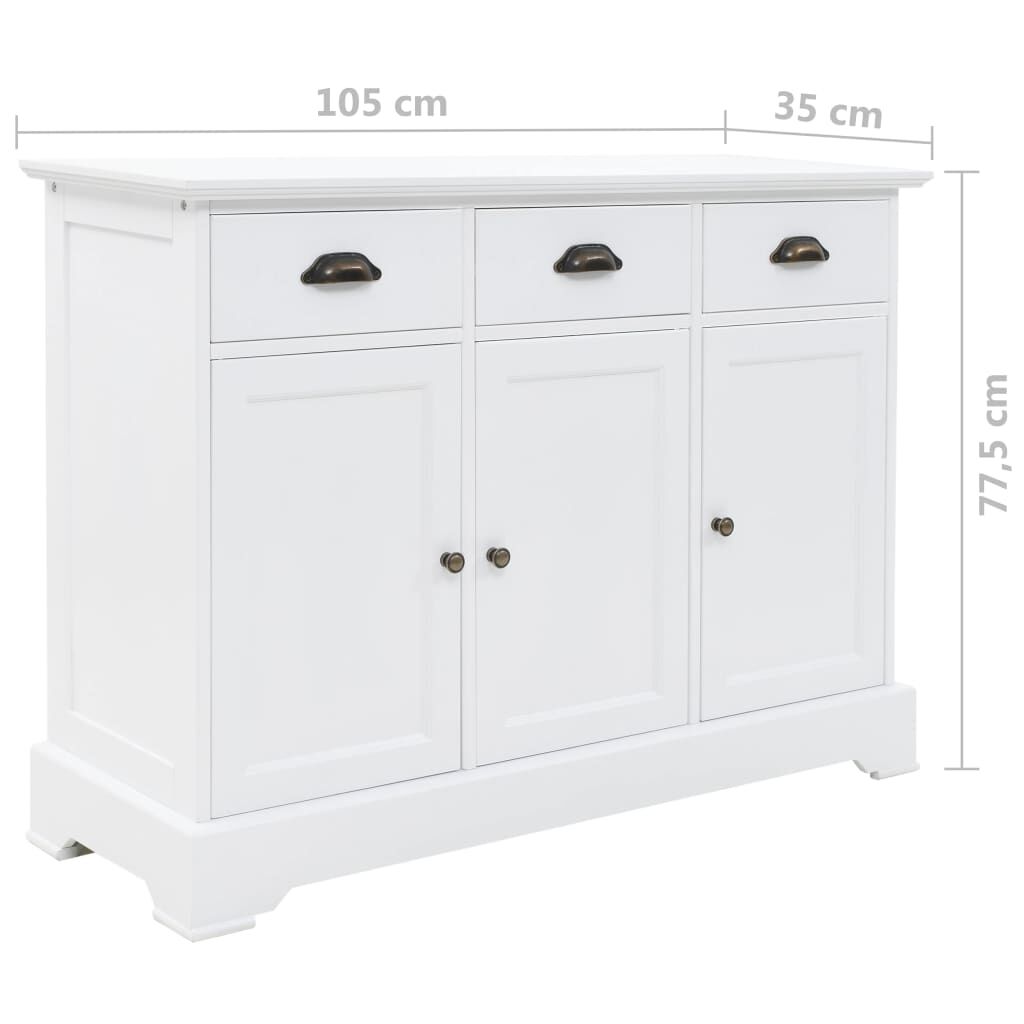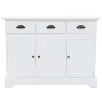 $373.49This sideboard will make a perfect addition to your living room decor, or any other room of the house, with its chic design and clean white finish. It can also be used as highboard or side cabinet. The dresser is made of MDF and decorated with metal handles on the drawers and doors. Designed with 3 drawers and 3 large cabinets, it offers ample storage space for books, multimedia appliances and other items. The surface is ideal for displaying decorative objects, photo frames, or potted plants. Assembly is easy.