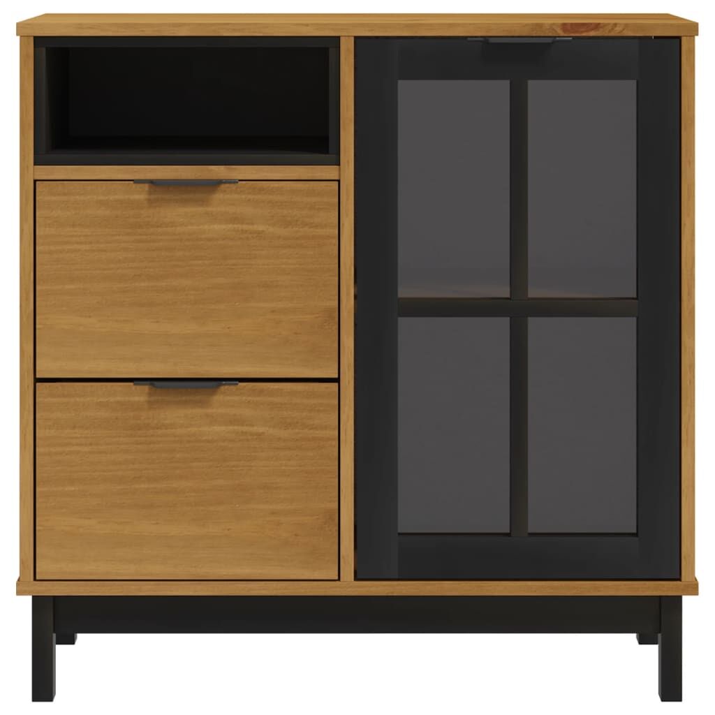 This wooden sideboard, featuring a timeless look, is meant to be an excellent addition to your home. Solid pine wood: Solid pine wood is a beautiful natural material. Pine wood has a straight grain, and the knots give the material its signature, rustic look. Made of solid pine wood, the storage cabinet is durable and sturdy.Ample storage space: The cupboard offers ample storage space for keeping your various daily essentials well-organised and within easy reach.Displaying function: The top of the storage cabinet is great for displaying your decorative items, photo albums or small plants. Warning:To prevent it being overturned, this product must be used with the provided wall attachment device.