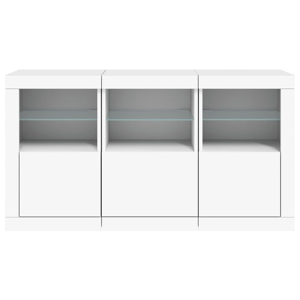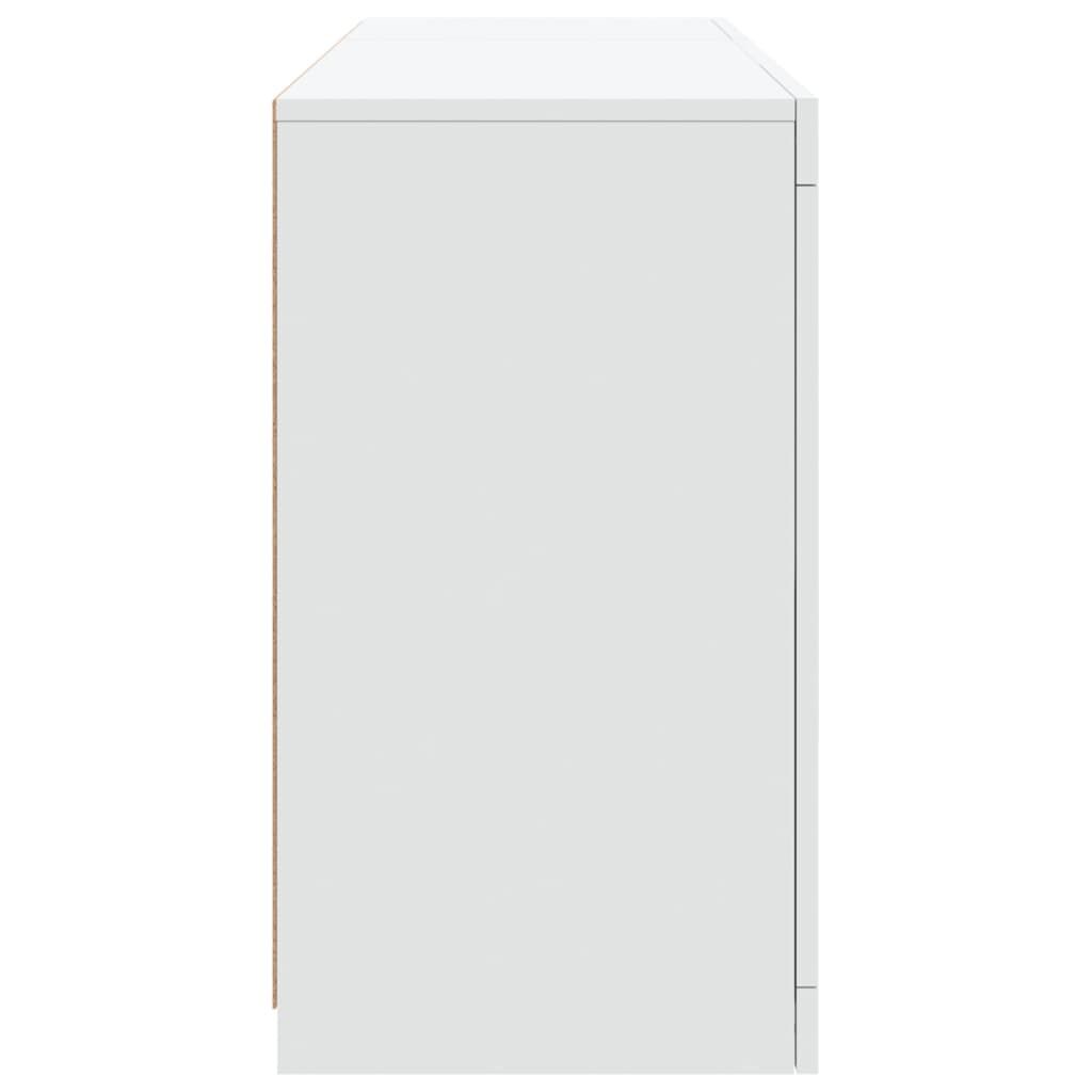 $262.79Decorate your room with this modern sideboard with LED lights, it easily blends with furniture in any style at your house. Durable material: The engineered wood is of exceptional quality with smooth surface and also features strength, stability and resistance to moisture.RGB LED lights: The buffet is equipped with vibrant RGB LED lights. With various customisable menus, you can effortlessly change the colour of the lights and even set them to adjust automatically. These LED lights not only enhance the contemporary look of the sideboard cabinet but also add to its trendy appeal.Ample storage space: The storage cabinet offers plenty of space to keep your everyday items neatly arranged and easily accessible.Displaying function: The sturdy top of the hallway cabinet is ideal for displaying decorative objects, photo frames, or potted plants.Practical doors: Keep your essentials free from dust by hiding them behind the doors of the side cabinet. Good to know:The product has a USB connector that requires a certified 5V USB power source (not included). Warning:To prevent it being overturned, this product must be used with the provided wall attachment device.
