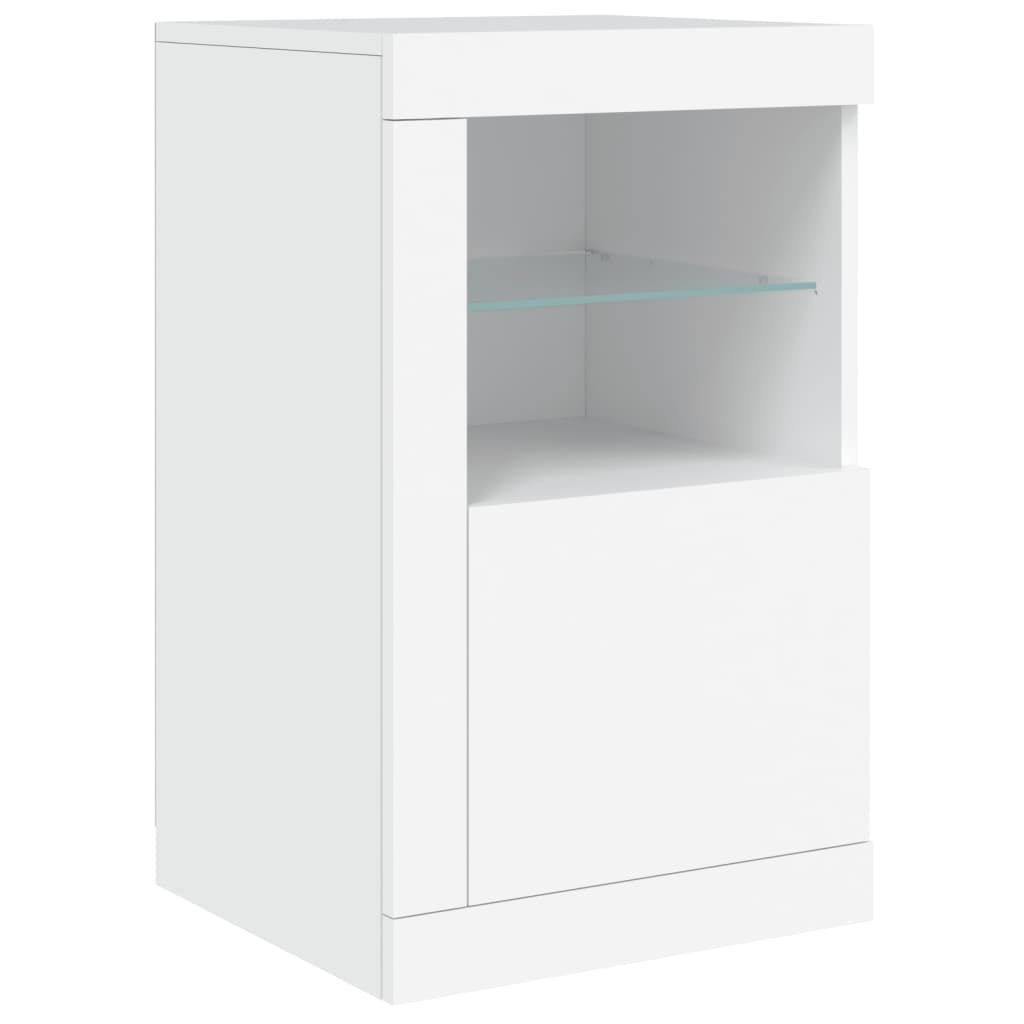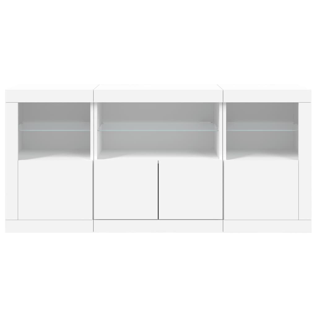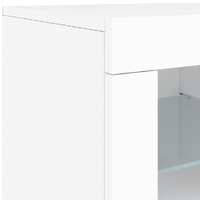 $305.99Decorate your room with this modern sideboard with LED lights, it easily blends with furniture in any style at your house. Durable material: The engineered wood is of exceptional quality with smooth surface and also features strength, stability and resistance to moisture.RGB LED lights: The buffet is equipped with vibrant RGB LED lights. With various customisable menus, you can effortlessly change the colour of the lights and even set them to adjust automatically. These LED lights not only enhance the contemporary look of the sideboard cabinet but also add to its trendy appeal.Ample storage space: The storage cabinet offers plenty of space to keep your everyday items neatly arranged and easily accessible.Displaying function: The sturdy top of the hallway cabinet is ideal for displaying decorative objects, photo frames, or potted plants.Practical doors: Keep your essentials free from dust by hiding them behind the doors of the side cabinet. Good to know:The product has a USB connector that requires a certified 5V USB power source (not included). Warning:To prevent it being overturned, this product must be used with the provided wall attachment device.