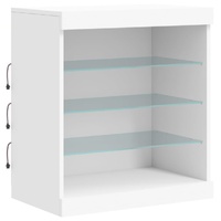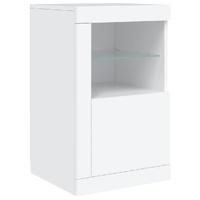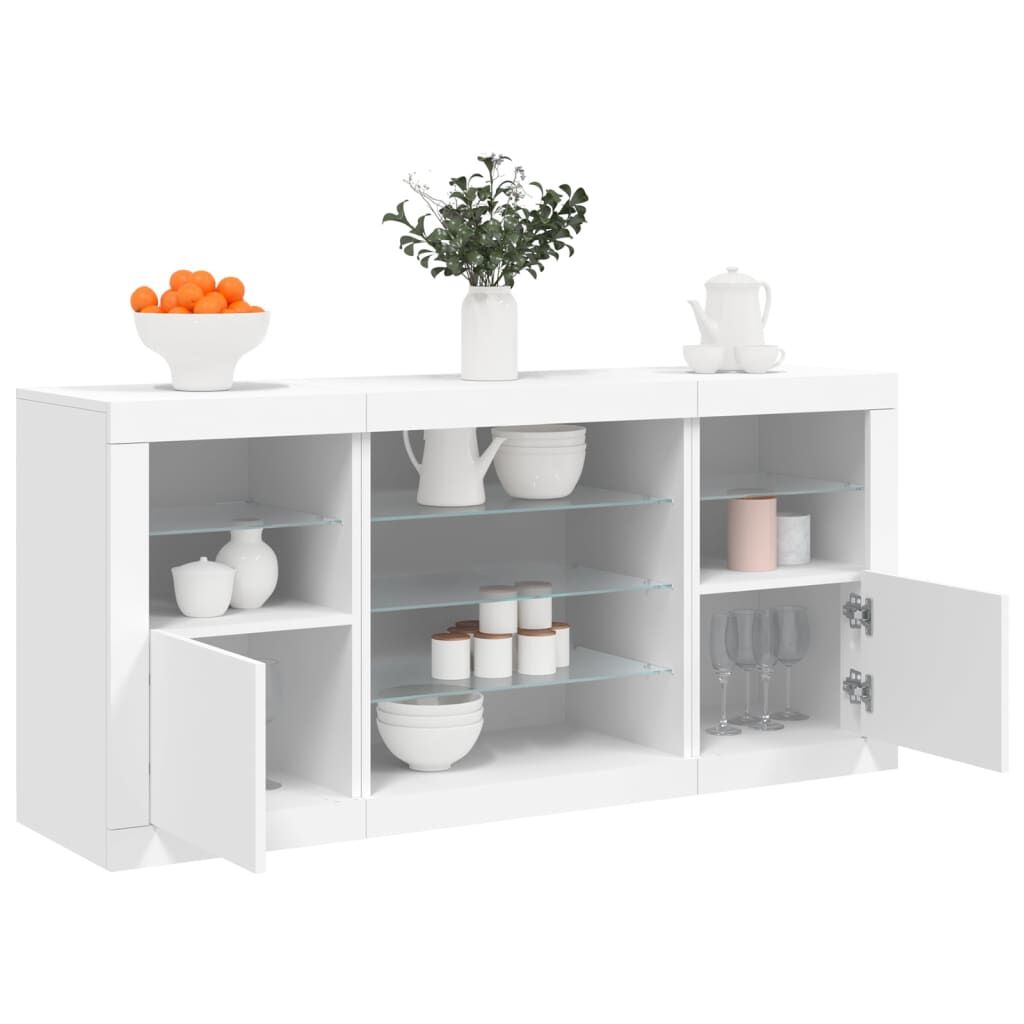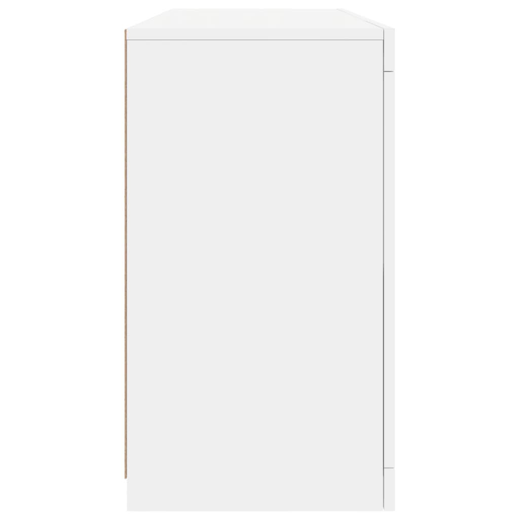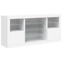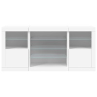 Decorate your room with this modern sideboard with LED lights, it easily blends with furniture in any style at your house. Durable material: The engineered wood is of exceptional quality with smooth surface and also features strength, stability and resistance to moisture.RGB LED lights: The buffet is equipped with vibrant RGB LED lights. With various customisable menus, you can effortlessly change the colour of the lights and even set them to adjust automatically. These LED lights not only enhance the contemporary look of the sideboard cabinet but also add to its trendy appeal.Ample storage space: The storage cabinet offers plenty of space to keep your everyday items neatly arranged and easily accessible.Displaying function: The sturdy top of the hallway cabinet is ideal for displaying decorative objects, photo frames, or potted plants.Practical doors: Keep your essentials free from dust by hiding them behind the doors of the side cabinet. Good to know:The product has a USB connector that requires a certified 5V USB power source (not included). Warning:To prevent it being overturned, this product must be used with the provided wall attachment device.