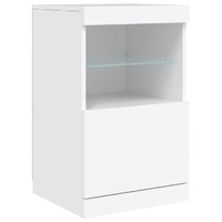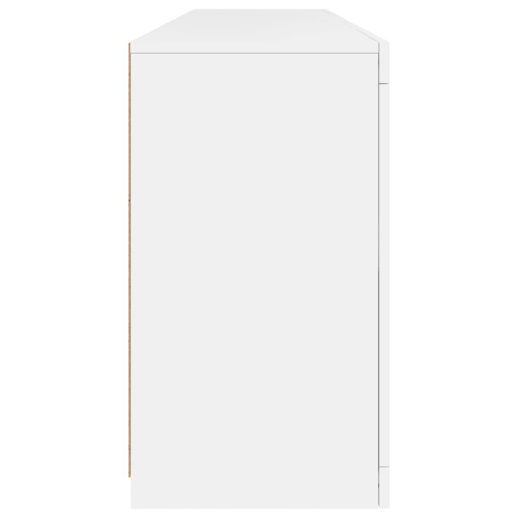 $323.09Decorate your room with this modern sideboard with LED lights, it easily blends with furniture in any style at your house. Durable material: The engineered wood is of exceptional quality with smooth surface and also features strength, stability and resistance to moisture.RGB LED lights: The buffet is equipped with vibrant RGB LED lights. With various customisable menus, you can effortlessly change the colour of the lights and even set them to adjust automatically. These LED lights not only enhance the contemporary look of the sideboard cabinet but also add to its trendy appeal.Ample storage space: The storage cabinet offers plenty of space to keep your everyday items neatly arranged and easily accessible.Displaying function: The sturdy top of the hallway cabinet is ideal for displaying decorative objects, photo frames, or potted plants.Practical doors: Keep your essentials free from dust by hiding them behind the doors of the side cabinet. Good to know:The product has a USB connector that requires a certified 5V USB power source (not included). Warning:To prevent it being overturned, this product must be used with the provided wall attachment device.
