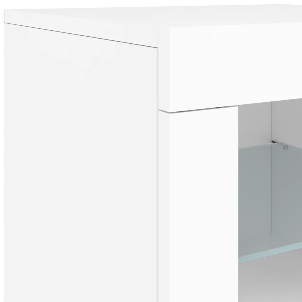 $315.89Decorate your room with this modern sideboard with LED lights, it easily blends with furniture in any style at your house. Durable material: The engineered wood is of exceptional quality with smooth surface and also features strength, stability and resistance to moisture.RGB LED lights: The buffet is equipped with vibrant RGB LED lights. With various customisable menus, you can effortlessly change the colour of the lights and even set them to adjust automatically. These LED lights not only enhance the contemporary look of the sideboard cabinet but also add to its trendy appeal.Ample storage space: The storage cabinet offers plenty of space to keep your everyday items neatly arranged and easily accessible.Displaying function: The sturdy top of the hallway cabinet is ideal for displaying decorative objects, photo frames, or potted plants.Practical doors: Keep your essentials free from dust by hiding them behind the doors of the side cabinet. Good to know:The product has a USB connector that requires a certified 5V USB power source (not included). Warning:To prevent it being overturned, this product must be used with the provided wall attachment device.