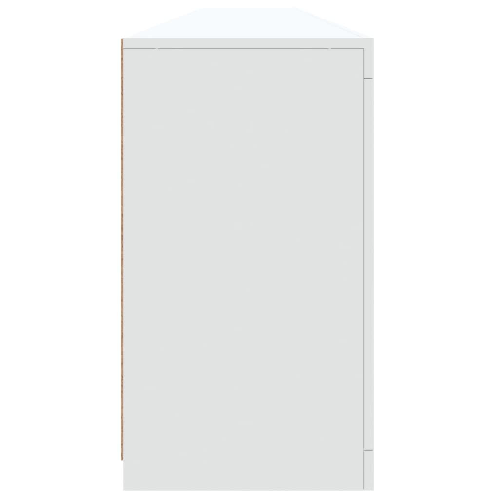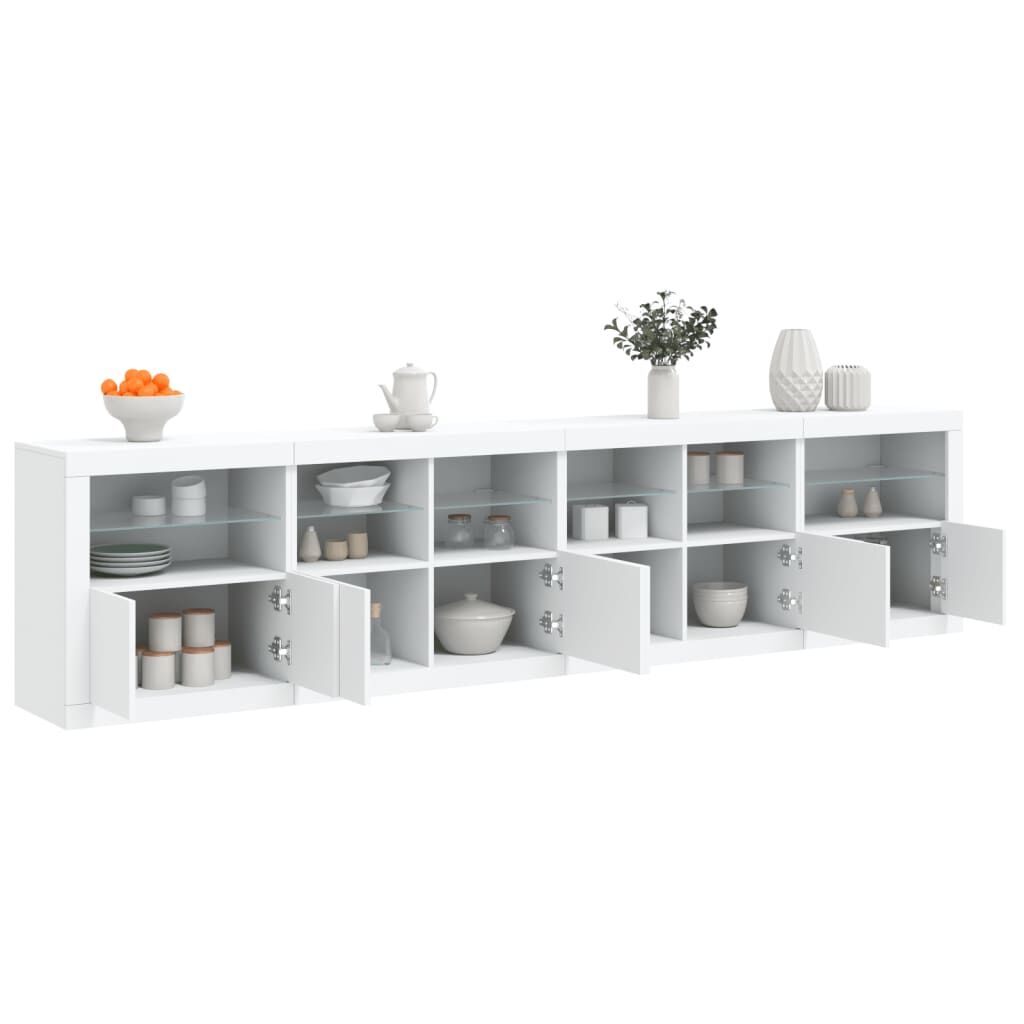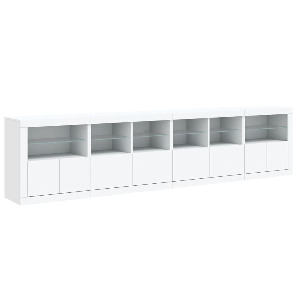 $438.29Decorate your room with this modern sideboard with LED lights, it easily blends with furniture in any style at your house. Durable material: The engineered wood is of exceptional quality with smooth surface and also features strength, stability and resistance to moisture.RGB LED lights: The buffet is equipped with vibrant RGB LED lights. With various customisable menus, you can effortlessly change the colour of the lights and even set them to adjust automatically. These LED lights not only enhance the contemporary look of the sideboard cabinet but also add to its trendy appeal.Ample storage space: The storage cabinet offers plenty of space to keep your everyday items neatly arranged and easily accessible.Displaying function: The sturdy top of the hallway cabinet is ideal for displaying decorative objects, photo frames, or potted plants.Practical doors: Keep your essentials free from dust by hiding them behind the doors of the side cabinet. Good to know:The product has a USB connector that requires a certified 5V USB power source (not included). Warning:To prevent it being overturned, this product must be used with the provided wall attachment device.