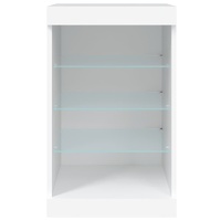 $76.49Decorate your room with this modern sideboard with LED lights, it easily blends with furniture in any style at your house. Durable material: The engineered wood is of exceptional quality with a smooth surface and features strength, stability and resistance to moisture.Ample storage space: The buffet provides plenty of storage space for keeping your magazines, books, remote controls and other small items well-organised and within easy reach.Displaying function: The sturdy top of the sideboard cabinet is ideal for displaying decorative objects, photo frames, or potted plants.Adjustable LED lights: This storage cabinet is equipped with RGB LED lights, which has different menus to change the light colour and adjust it automatically, decorating your home colourful and beautiful. Warning:To prevent it being overturned, this product must be used with the provided wall attachment device. Good to know:The product has a USB connector that requires a certified 5V USB power source (not included).