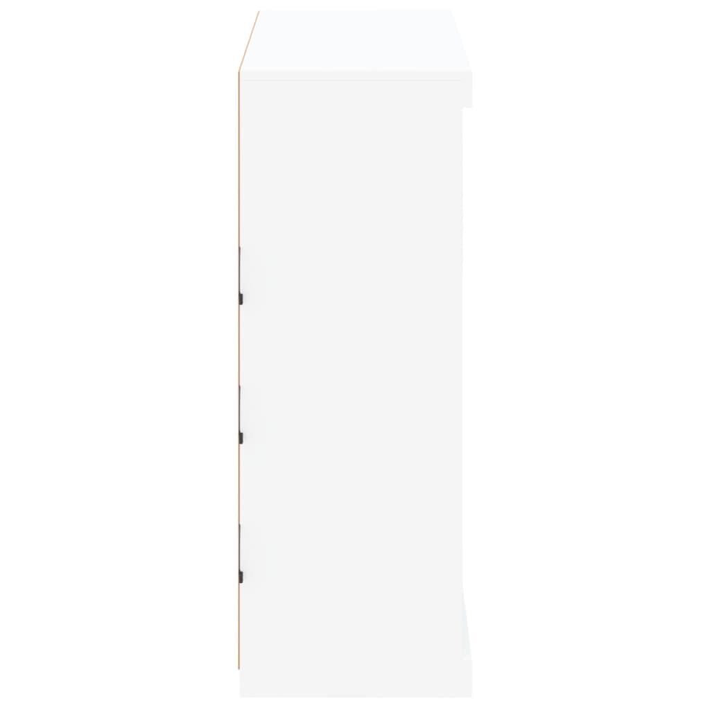 Decorate your room with this modern sideboard with LED lights, it easily blends with furniture in any style at your house. Durable material: The engineered wood is of exceptional quality with a smooth surface and features strength, stability and resistance to moisture.Ample storage space: The buffet provides plenty of storage space for keeping your magazines, books, remote controls and other small items well-organised and within easy reach.Displaying function: The sturdy top of the sideboard cabinet is ideal for displaying decorative objects, photo frames, or potted plants.Adjustable LED lights: This storage cabinet is equipped with RGB LED lights, which has different menus to change the light colour and adjust it automatically, decorating your home colourful and beautiful. Warning:To prevent it being overturned, this product must be used with the provided wall attachment device. Good to know:The product has a USB connector that requires a certified 5V USB power source (not included).