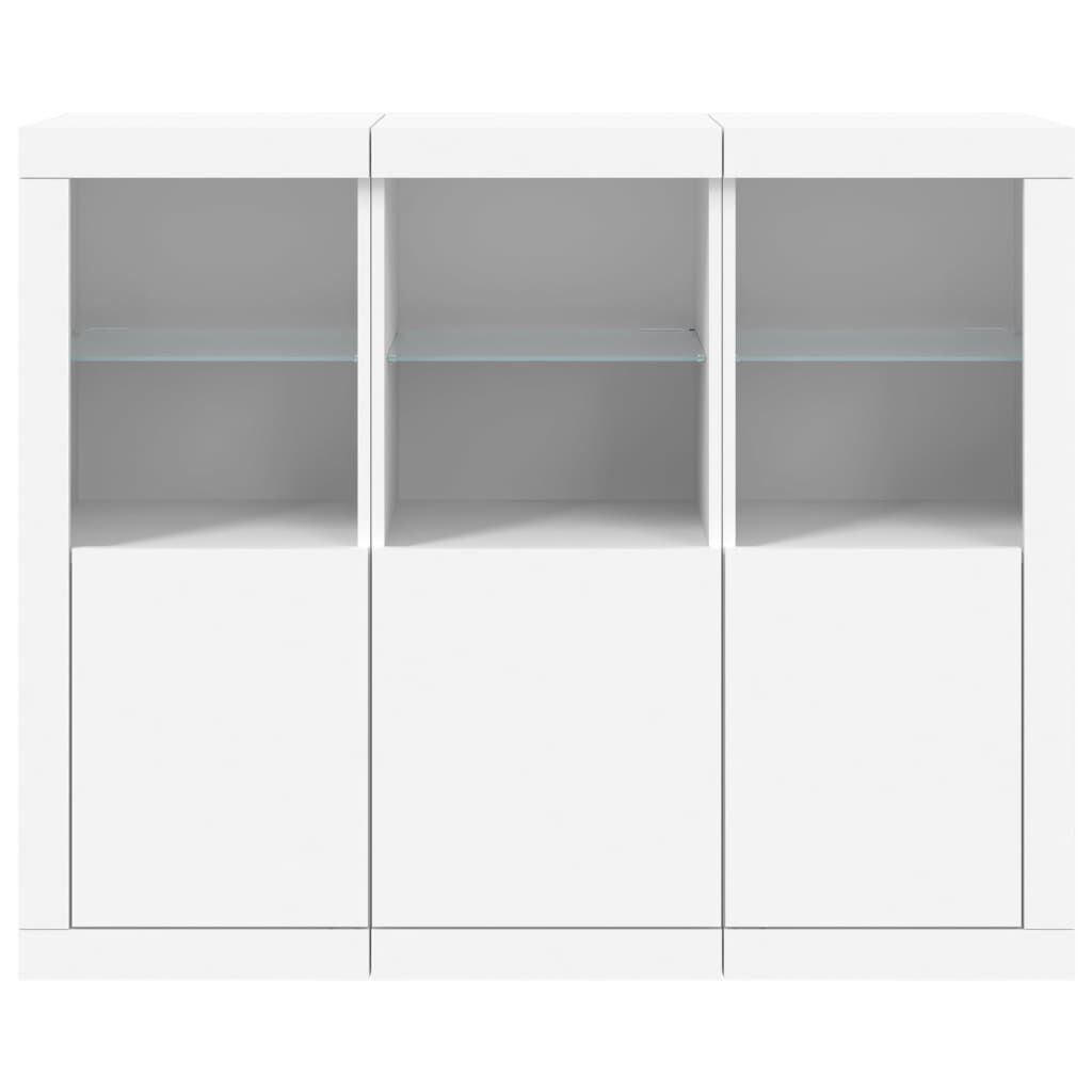 $274.49Decorate your room with these modern sideboards with LED lights, they easily blend with furniture in any style at your house. Durable material: The engineered wood is of exceptional quality with a smooth surface and features strength, stability and resistance to moisture.Ample storage space: These buffets provide plenty of storage space for keeping your magazines, books, remote controls and other small items well-organised and within easy reach.Displaying function: The sturdy top of sideboard cabinets is ideal for displaying decorative objects, photo frames, or potted plants.Adjustable LED lights: These storage cabinets are equipped with RGB LED lights, which have different menus to change the light colour and adjust it automatically, decorating your home colourful and beautiful. Warning:To prevent it being overturned, this product must be used with the provided wall attachment device.Good to know:The product has a USB connector that requires a certified 5V USB power source (not included).
