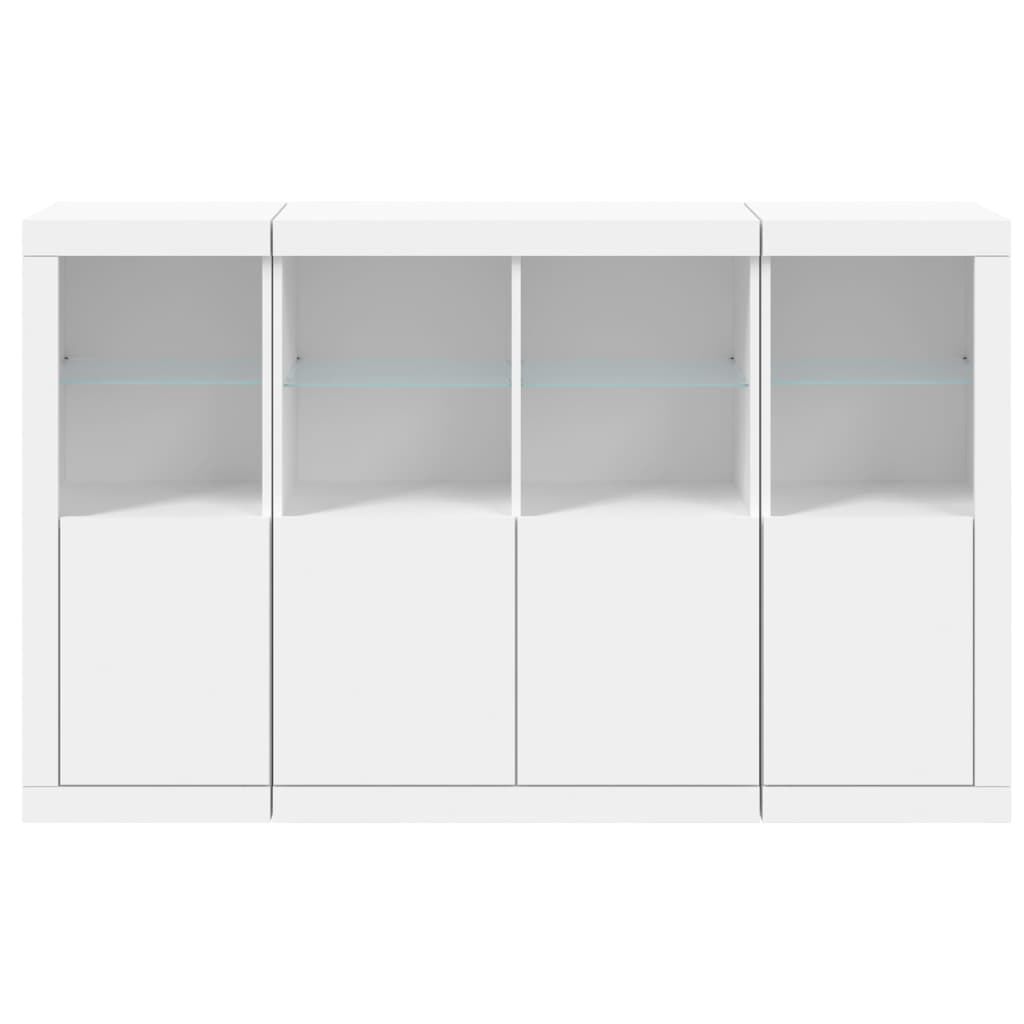 $332.09Decorate your room with these modern sideboards with LED lights, they easily blend with furniture in any style at your house. Durable material: The engineered wood is of exceptional quality with a smooth surface and features strength, stability and resistance to moisture.Ample storage space: These buffets provide plenty of storage space for keeping your magazines, books, remote controls and other small items well-organised and within easy reach.Displaying function: The sturdy top of sideboard cabinets is ideal for displaying decorative objects, photo frames, or potted plants.Adjustable LED lights: These storage cabinets are equipped with RGB LED lights, which have different menus to change the light colour and adjust it automatically, decorating your home colourful and beautiful. Warning:To prevent it being overturned, this product must be used with the provided wall attachment device.Good to know:The product has a USB connector that requires a certified 5V USB power source (not included).