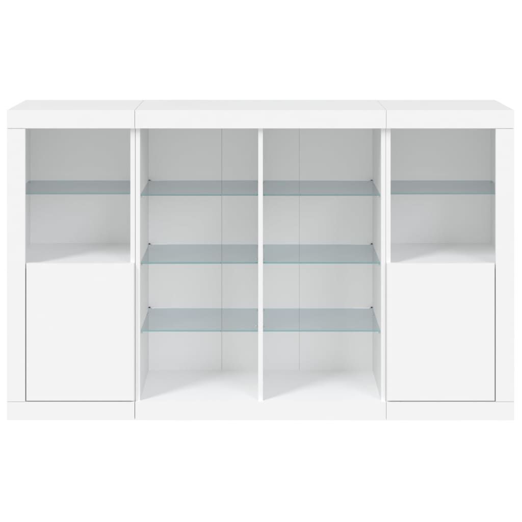 $336.59Decorate your room with these modern sideboards with LED lights, they easily blend with furniture in any style at your house. Durable material: The engineered wood is of exceptional quality with a smooth surface and features strength, stability and resistance to moisture.Ample storage space: These buffets provide plenty of storage space for keeping your magazines, books, remote controls and other small items well-organised and within easy reach.Displaying function: The sturdy top of sideboard cabinets is ideal for displaying decorative objects, photo frames, or potted plants.Adjustable LED lights: These storage cabinets are equipped with RGB LED lights, which have different menus to change the light colour and adjust it automatically, decorating your home colourful and beautiful. Warning:To prevent it being overturned, this product must be used with the provided wall attachment device.Good to know:The product has a USB connector that requires a certified 5V USB power source (not included).
