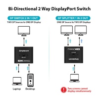 CM202 is bi-directional 2-way DisplayPort switch than can be used to switch two different DisplayPort sources or DisplayPort displays. Toggle button allows you to quickly select a video source or displays, without having to swap cables.