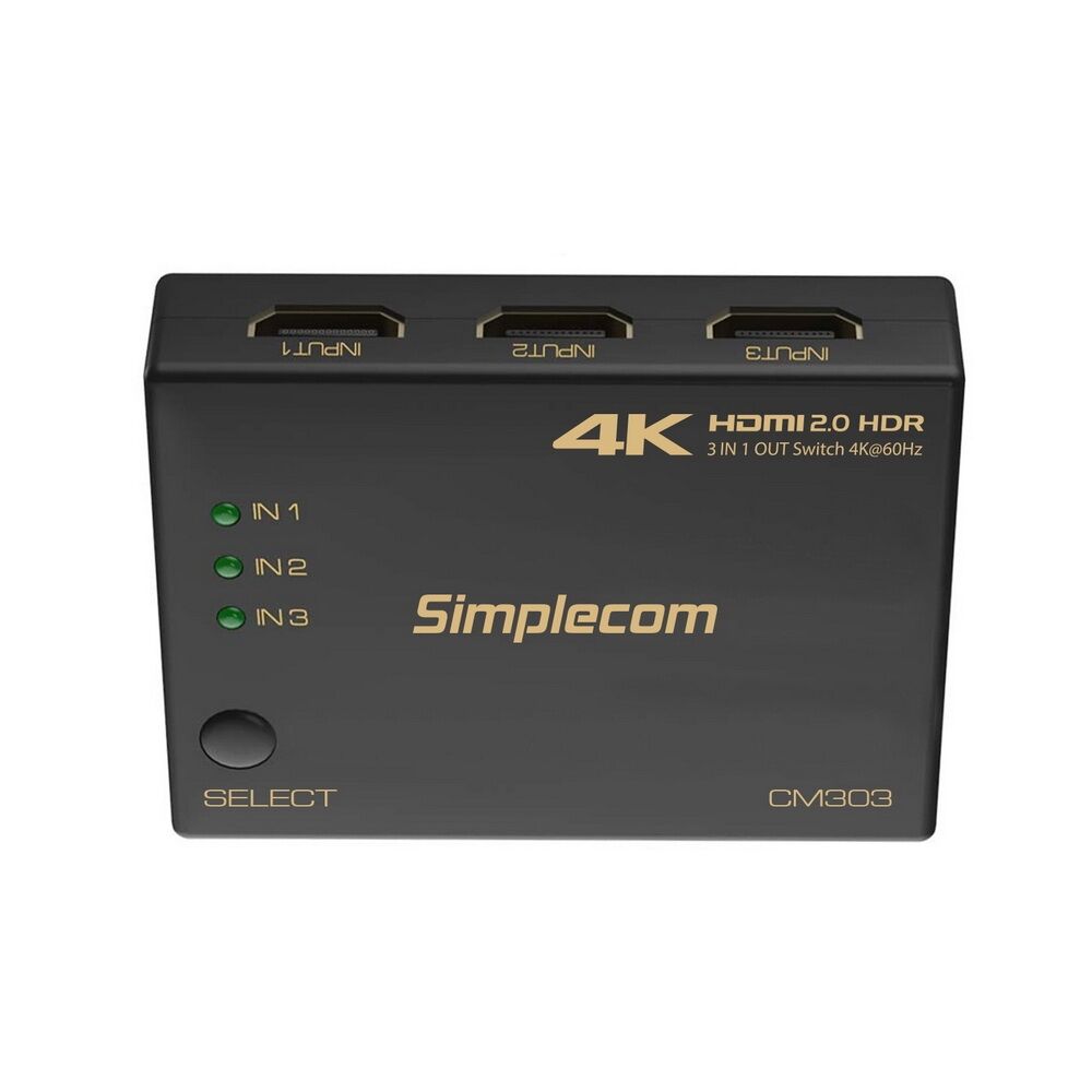 $32.39Simplecom CM303 Ultra HD 3 Way HDMI Switch 3 IN 1 OUT Splitter 4K@60Hz