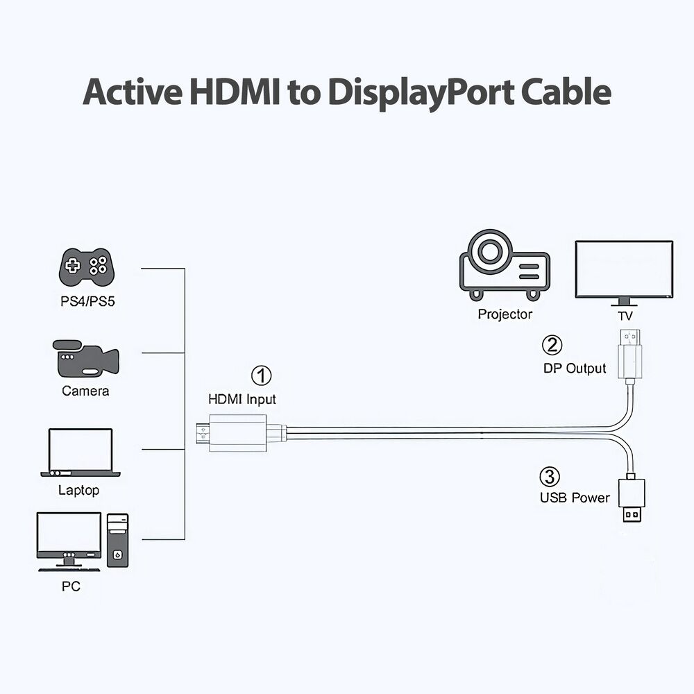Active converter cable connects your HDMI source to a DisplayPort monitor