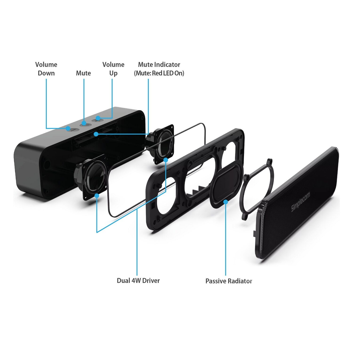 No need extra 3.5mm audio cable and no need external power, this is a true single cable USB speaker with built-in audio decoder, one USB cable for both audio signal and power. Single cable helps to avoid messy wires, also save and tidy your desktop space.