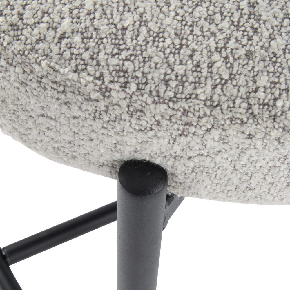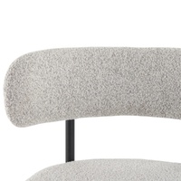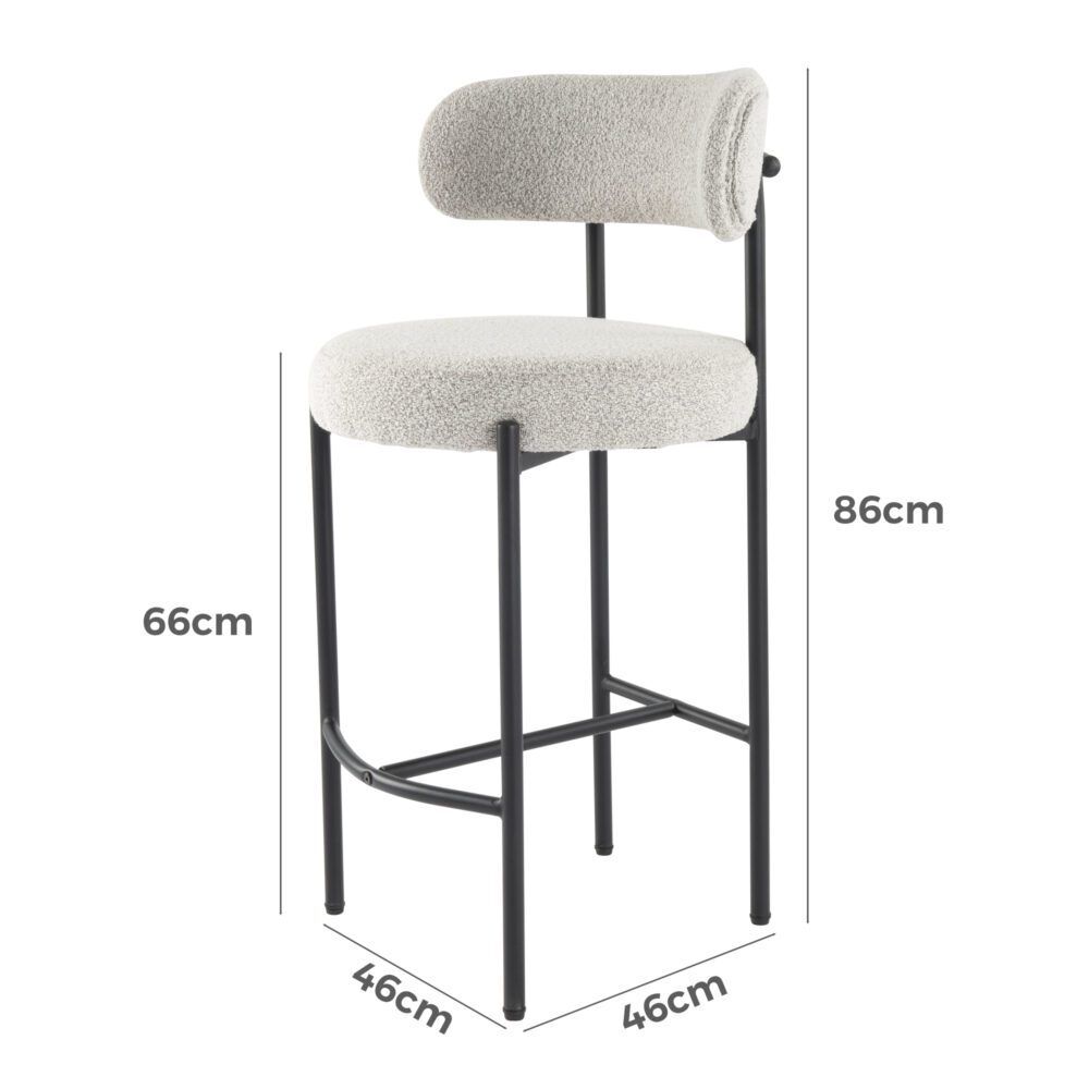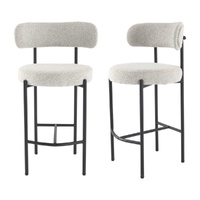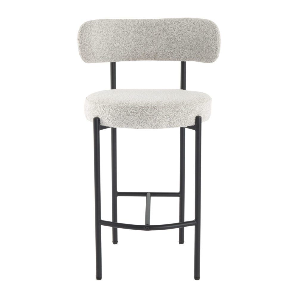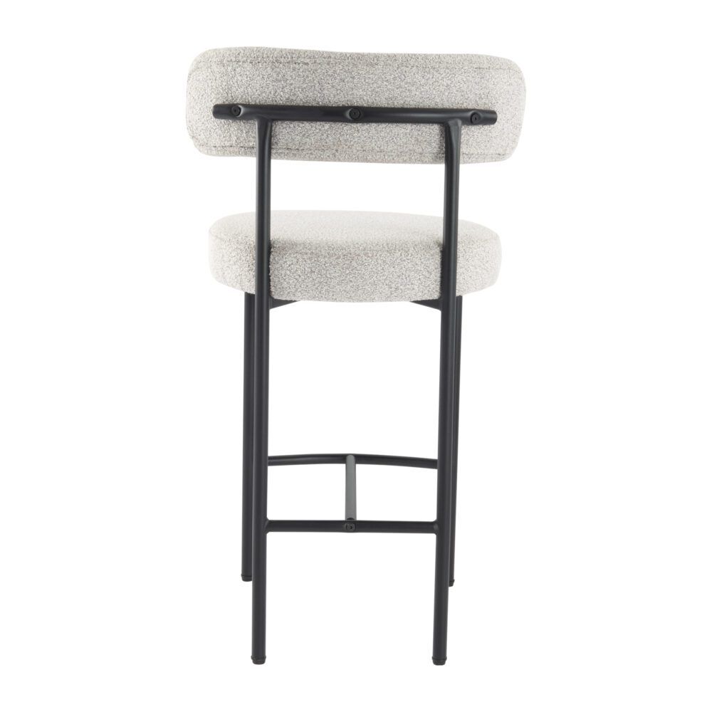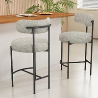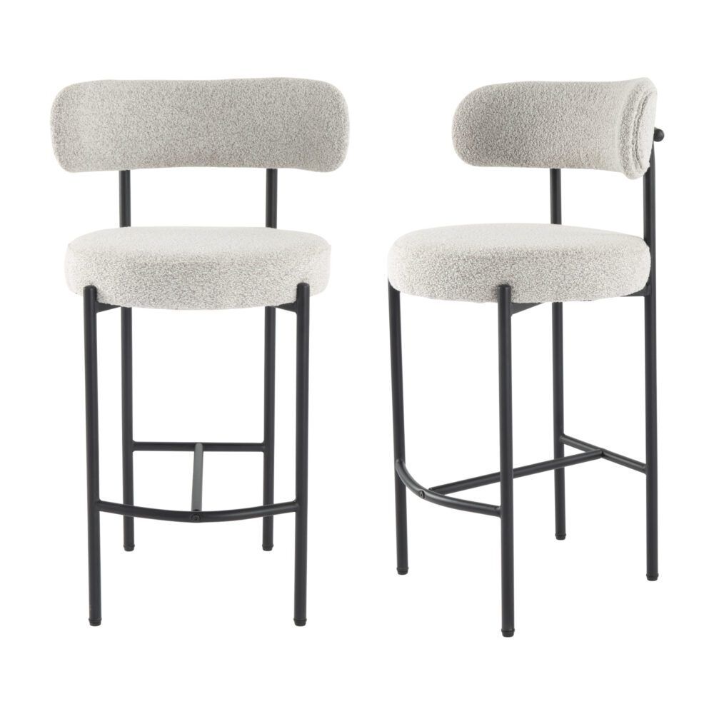 Upholstered in textured boucle fabric, this counter-height stool set exhibits a chic silhouette with its rounded seat and curved backrest, enhancing your dining or kitchen area's aesthetic.