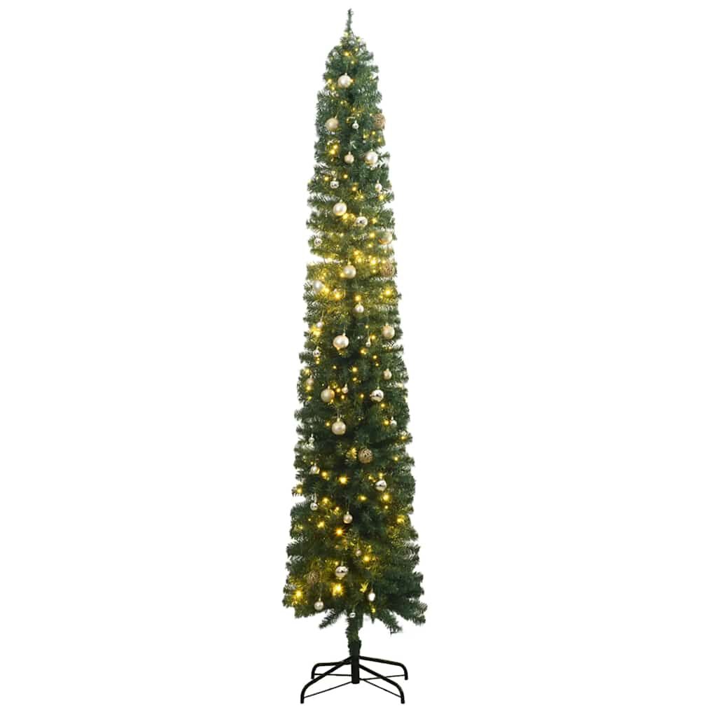 $165.59Comes with beautiful holiday decorations, this slim Christmas tree with LEDs will be eye-catching in the evening and create just the right atmosphere for this Christmas. Space-saving design: The pencil Christmas tree can be placed against the wall to save more space. It is a great choice if you have limited space.8 lighting modes: The LED string light has 8 different lighting effects (combination, in wave, sequential, slow glow, chasing/running water, slow fade, twinkle/flash, and steady on). You can switch the lighting modes by pressing the button on the USB to create different holiday atmospheres.Beautiful decoration: These shiny Christmas balls are available in three different sizes, which bring more possibilities for your DIY decoration.Sturdy stand: The metal stand provides your Xmas tree with optimal sturdiness and stability.Economical choice: You can reuse the holiday ornament every year, which is a cost-effective option compared to getting a real tree. Good to know:We recommend setting aside 60-75 minutes after assembly to properly shape the tree by peeling back the branches and pulling the tips apart to give the branches a more full-bodied look.The product has a USB connector that requires a certified 5V USB power source (not included).Please ensure that the USB connection is plugged in a dry environment.