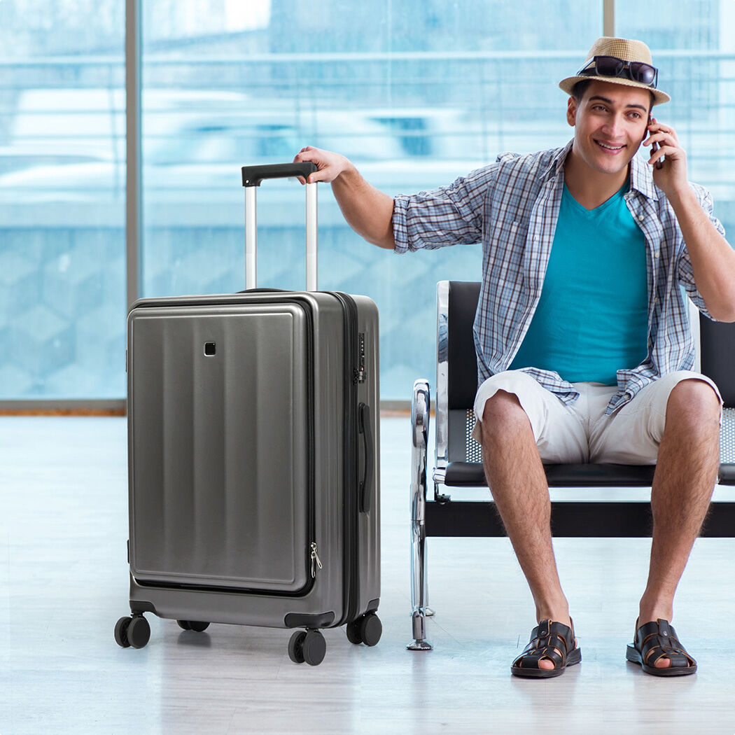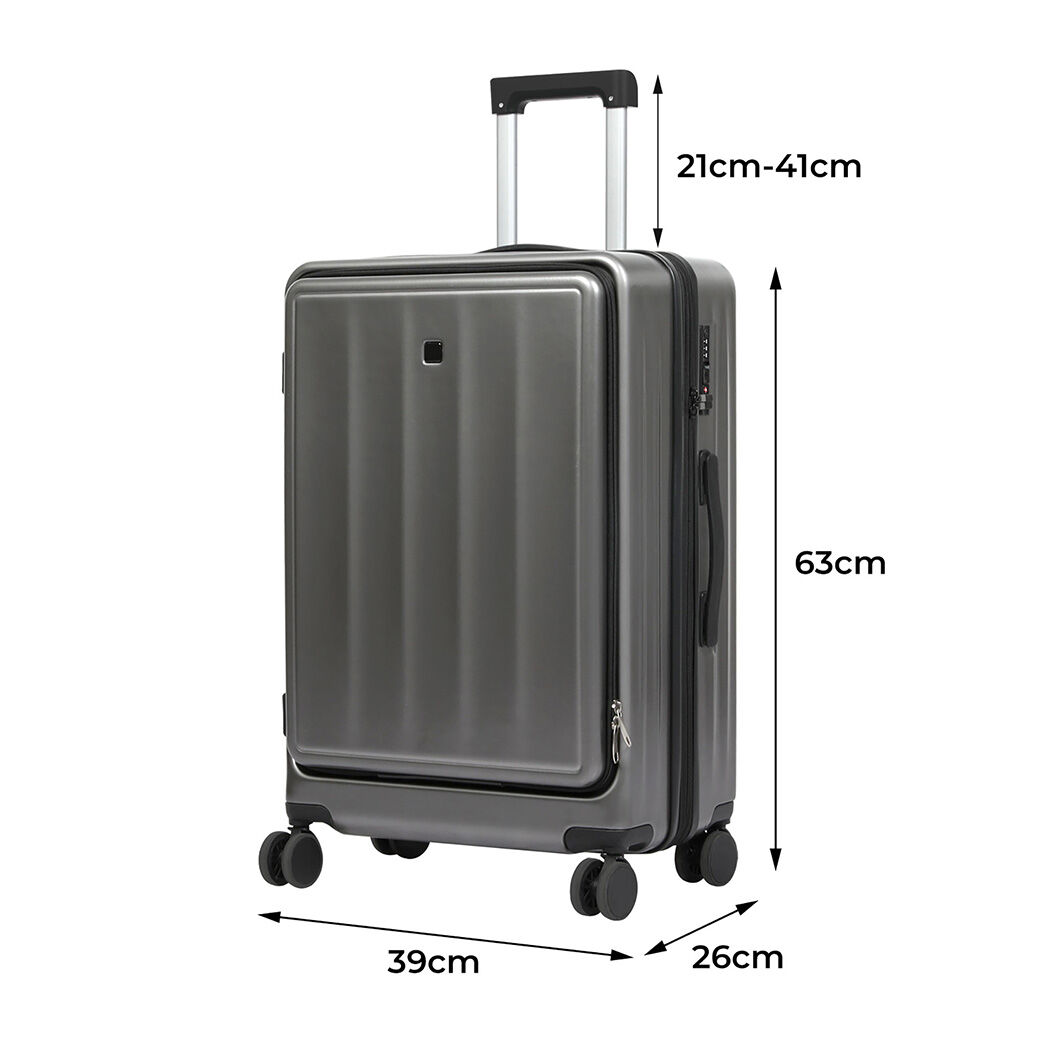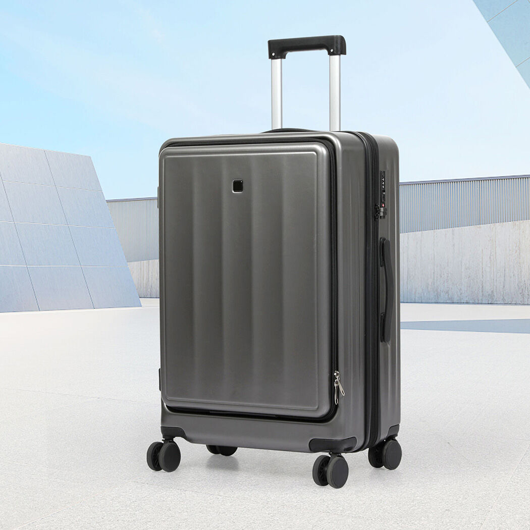 Are you looking for a reliable luggage? This front-opening suitcase is designed to meet the diverse needs of different users. For business professionals who frequently travel, the convenient front compartment allows easy access to important items like laptops and documents, improving efficiency. Travel enthusiasts, including families and solo adventurers, benefit from quick access to frequently used items like cameras, water bottles, and snacks without fully opening the suitcase. International students and expatriates will appreciate the suitcase's organized compartments, making packing and unpacking easier while enhancing convenience. Additionally, consumers who value organized packing will find the well-designed interior sections perfect for keeping everything tidy. The suitcase also features an expandable layer, adding 5 cm to its depth when extra space is needed, and includes a built-in cup holder for added convenience.