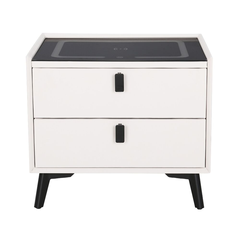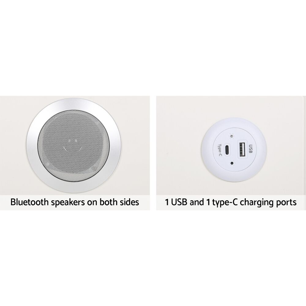 $126.89Upgrade your living space with the Artiss Aika Smart Bedside Table. The table allows you to charge your phone wirelessly or via USB, and also contains a Bluetooth speaker to listen to your favourite tunes. Constructed from quality MDF upholstered with premium PU leather and topped with a tempered glass tabletop, the smart table is perfectly stylish and durable. The two drawers feature sleek metal handles and ample storage space for all your night-time essentials. With one USB and one type C charging port, you can charge your devices both wirelessly and wired. Adjust the light-up charging panel to achieve the perfect ambience for sleep. The metal legs will keep your table standing, while anti-slip pads keep the piece in place and protect your floors. Easy to assemble and even easier to maintain, you'll love the style and functionality of the Aika Smart Bedside Table from Artiss.