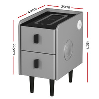$124.19Upgrade your living space with the Artiss Aida Smart Bedside Table. The table allows you to charge your phone wirelessly or via USB, and also contains a Bluetooth speaker to listen to your favourite tunes. Constructed from quality MDF upholstered with premium PU leather and topped with a tempered glass tabletop, the smart table is perfectly stylish and durable. The two drawers feature sleek metal handles and ample storage space for all your night-time essentials. With one USB and one type C charging port, you can charge your devices both wirelessly and wired. Adjust the light-up charging panel to achieve the perfect ambience for sleep. The metal legs will keep your table standing, while anti-slip pads keep the piece in place and protect your floors. Easy to assemble and even easier to maintain, you'll love the style and functionality of the Aida Smart Bedside Table from Artiss.