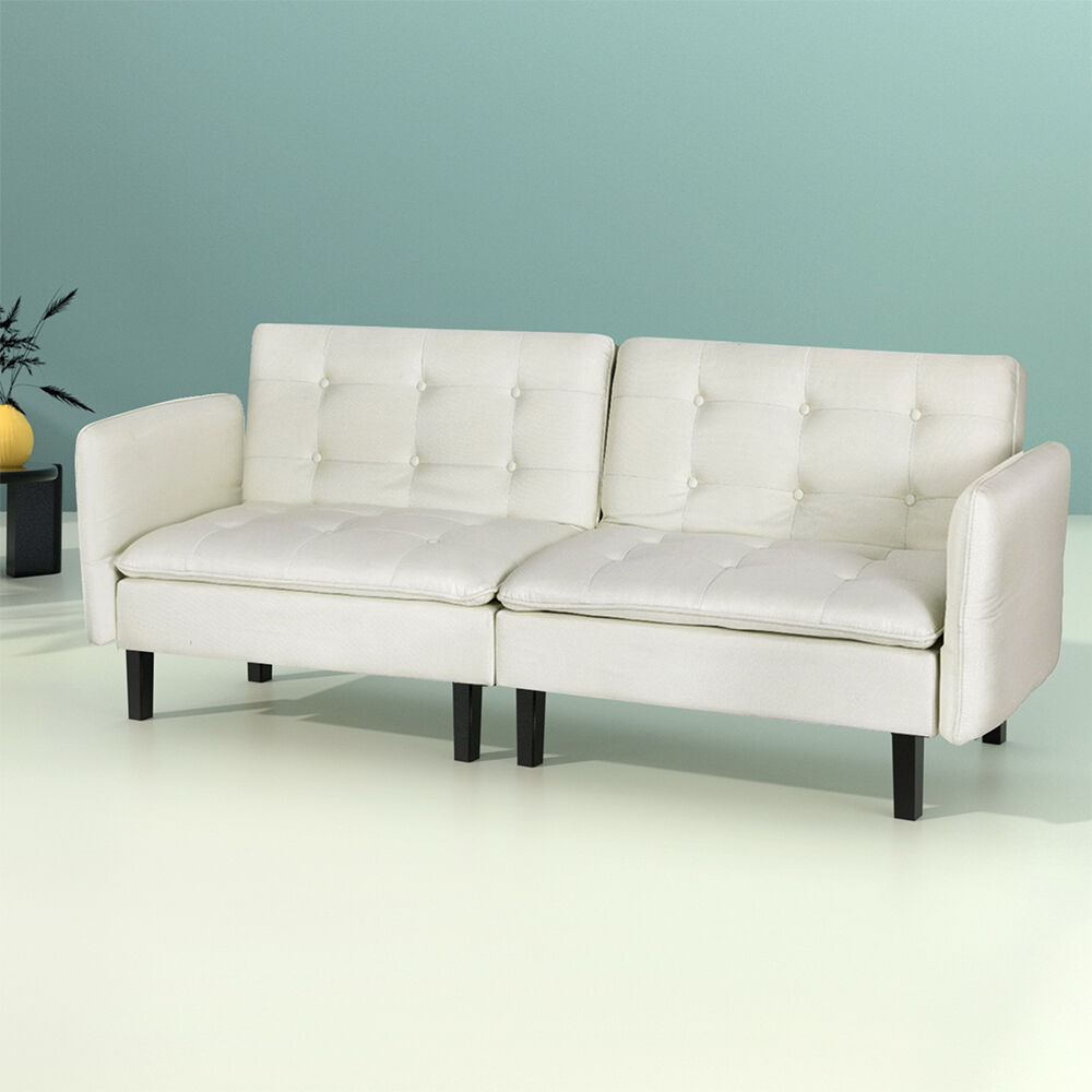 $320.36The Artiss Serena Sofa Bed is the perfect addition to your living space. Functioning as both a comfortable lounge chair and a spacious spare bed, this piece is the ideal space-saver for small homes, studio apartments and functional living rooms. Constructed with a eucalyptus wood frame, filled with extra thick foam and upholstered in breathable faux-linen fabric, the sofa bed is sturdy and supportive for long days and nights of entertainment and relaxation. The solid rubberwood legs keep the sofa bed upright and support the 300kg weight capacity. During the day, the couch functions as a generous 3-seater that will perfectly fit your friends and family while you entertain. Within minutes, you can convert the sofa to a bed with three adjustable backrest positions. Have it all in a single sofa - get the Artiss Serena Sofa Bed today.