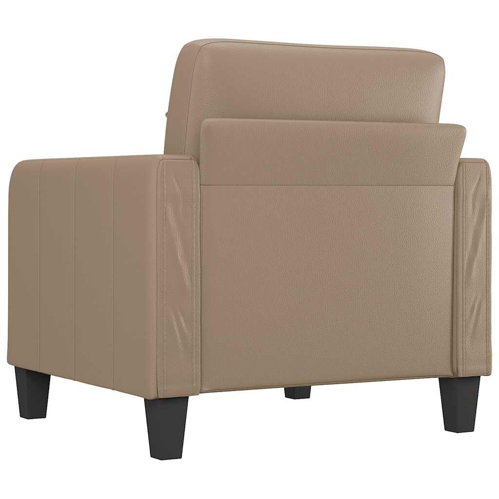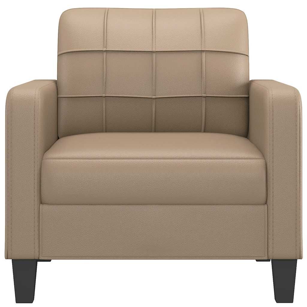 $238.03This sofa chair is an excellent place for chatting, reading, watching TV or just relaxing. It is meant to be a focal point in your home. Durable faux leather: Premium faux leather is a highly durable material. It is resistant to stain, making it easy to clean with a damp cloth. The smooth surface also gives a luxurious look and the beauty of real leather.Sturdy and stable frame: The metal frame of the sofa chair ensures sturdiness and stability.Comfortable seat experience: The armchair is highly comfortable with the thickly padded seat, armrests and back pillow.Eye-catching design: Featuring a simple yet modern design, this sofa is meant to be an eye-catcher in your room.