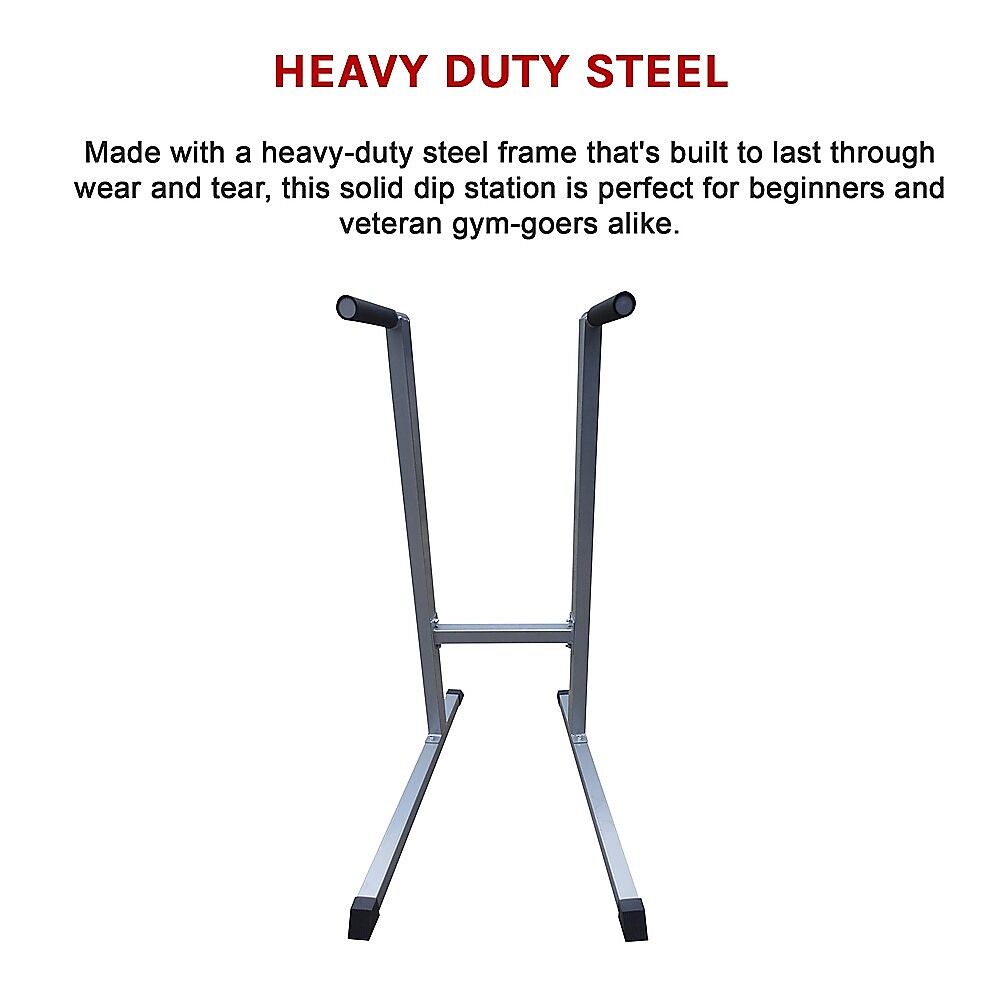 The Randy Travis Solid Dip Station will give you the upper body workout that delivers - it builds your shoulder strength, thickens your deltoids and develops your triceps. This sturdy device gets its balance from the wide, extended base that ensures stability. The 2 x 3 heavy-gauge steel uprights are suitable for users of all size. Your safety and comfort is ensured by the oversize 1 bars that feature extra-thick, slip-proof rubber grips in any position required by your exercises. This amazing piece of equipment can be used at the home or at the gym.