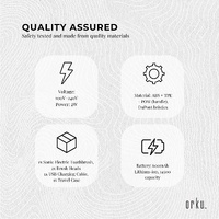 Charging within 4 hrs via USB and can last up to  60 days, this waterproof electric toothbrush offers 5 brushing modes for varying oral care needs and 100 % Du-Pont brush bristles.