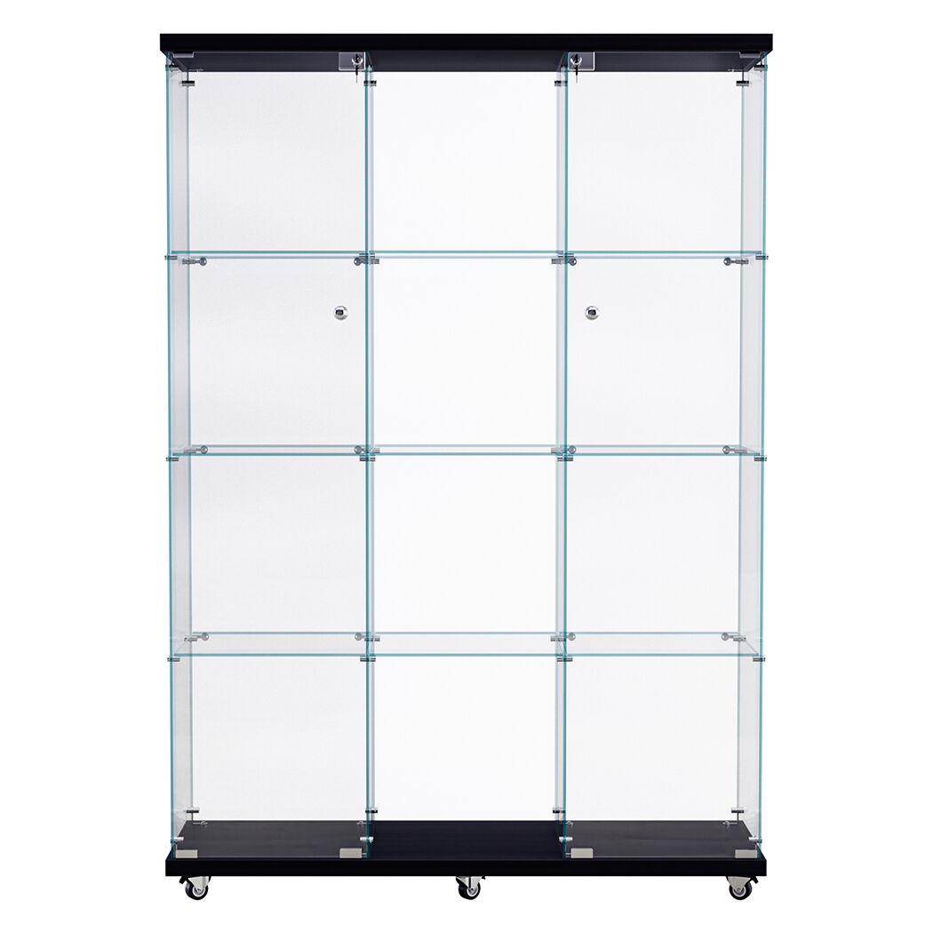 The Stacked Wheeled Glass Display Cabinet merges security and mobility in a sophisticated storage solution. This lockable showcase features crystal-clear 4mm tempered glass that offers both protection and pristine visibility for your valued collections. Built with quality particle board and equipped with wheels, this cabinet combines durability with convenience, allowing you to easily reposition your display while maintaining professional presentation.