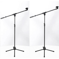 These perfectly balanced mic stands are made from a durable but lightweight metal material. Able to withstand the weight of even the heaviest bit of kit and remain standing upright, they can be easily adapted to the user's needs. Even when being folded up and put up again quickly on a repeated basis, these stands will last for decades. The stands are painted in a stylish, smooth black finish that will blend seamlessly with any stage setup, and continue looking good even after heavy use.