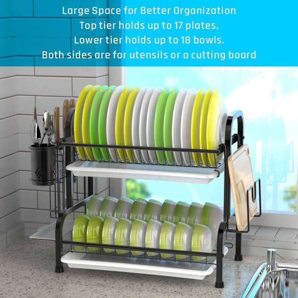 $109.24Stainless Steel 2-Tier Dish Drying Rack with Utensil Holder, Cutting Board Holder and Dish Drainer for Kitchen Counter (Black)