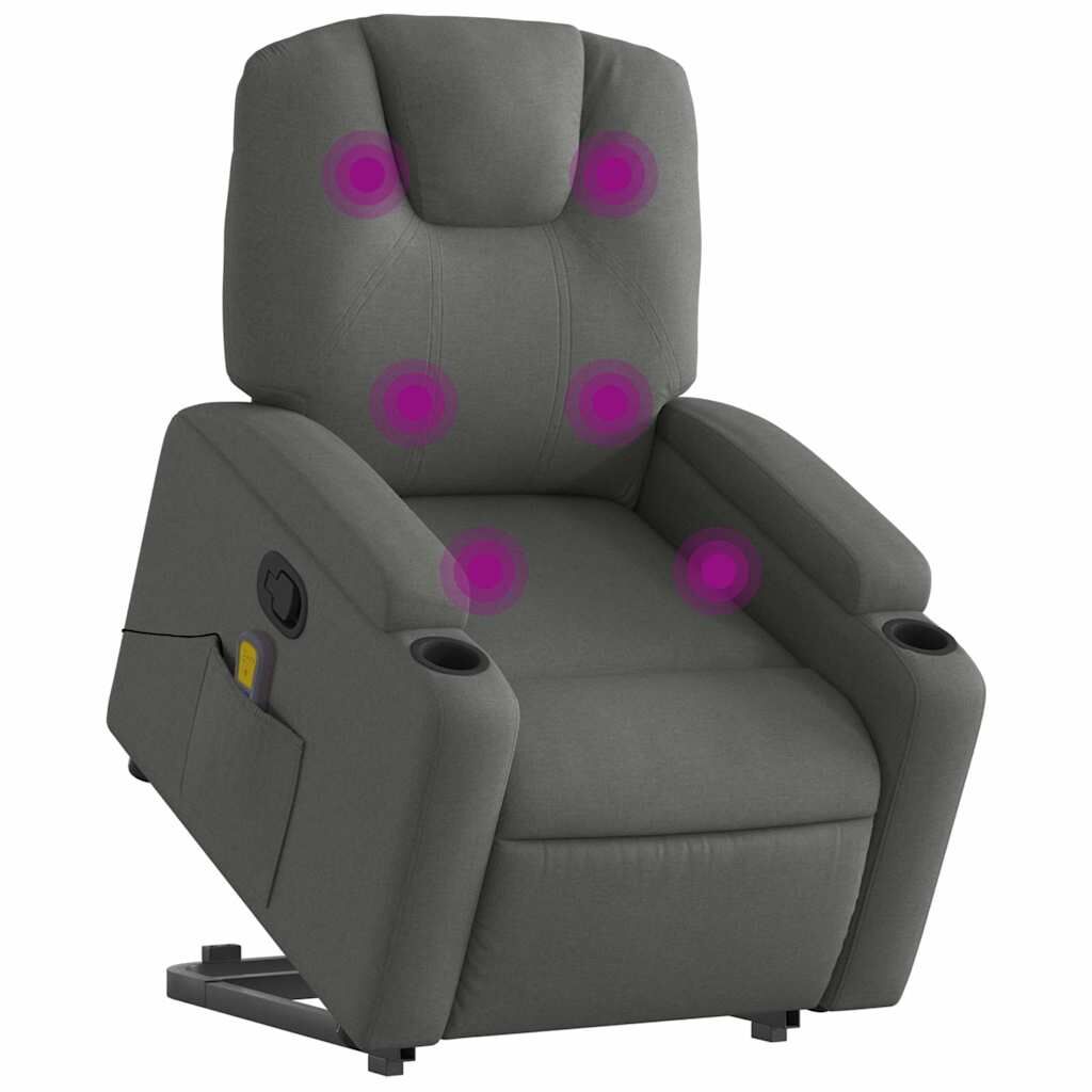 $437.39Sit back and drift away in this highly comfortable stand up massage recliner chair! Power lift function: This recliner chair for the elderly is equipped with an electric motor for the lifting-up function. Thanks to the function that pushes the entire chair up, you can easily stand without stressing your back and knees with a simple press of the button. Manual reclining function: This reclining chair has a handle on the right side. You can manually adjust the footrest and the backrest to any position as per your comfort with a simple pull of the handle. This feature allows for a maximum tilt of 135 degrees. Additionally, the backrest can go quickly back to the original place with an easy pull of the handle. Vibration function: The featured 6 massage points let you experience a better-targeted massage. Additionally, the included hand control allows you to pick different massage programs. The massage function is powered by the USB connector that requires a certified 5V USB power source (not included). Comfortable seat experience: The thickly padded seat, backrest, and wide armrests covered in fabric provide a cosy and warm sensation, making you feel embraced while seated. The fabric features a simple and clean look and is breathable and durable. Convenient cup holders and side pocket: This armchair has two convenient cup holders for your drinks and a side pocket for your remote control or keeping your essential items within easy reach. Solid and stable frame: The frame made of wood and metal provides a strong structure and stability. This reclining armchair is comfortable and durable.
