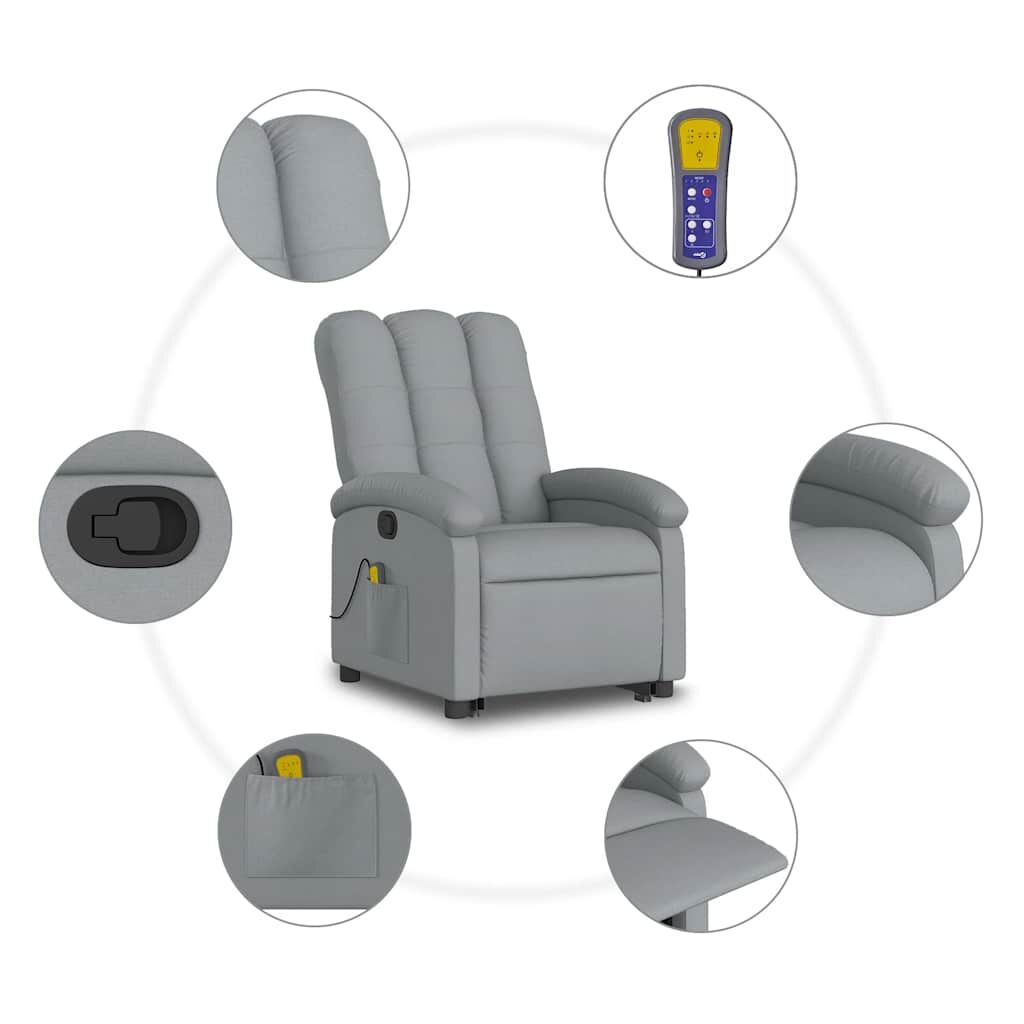 $413.99Sit back and drift away in this highly comfortable stand up massage recliner chair! Power lift function: This recliner chair for the elderly is equipped with an electric motor for the lifting-up function. Thanks to the function that pushes the entire chair up, you can easily stand without stressing your back and knees with a simple press of the button. Manual reclining function: This reclining chair has a handle on the right side. You can manually adjust the footrest and the backrest to any position as per your comfort with a simple pull of the handle. This feature allows for a maximum tilt of 135 degrees. Additionally, the backrest can go quickly back to the original place with an easy pull of the handle. Vibration function: The featured 6 massage points let you experience a better-targeted massage. Additionally, the included hand control allows you to pick different massage programs. The massage function is powered by the USB connector that requires a certified 5V USB power source (not included). Comfortable seat experience: The thickly padded seat, backrest, and wide armrests covered in fabric provide a cosy and warm sensation, making you feel embraced while seated. The fabric features a simple and clean look and is breathable and durable. Convenient side pocket: This armchair has a side pocket for your remote control or keeping your essential items within easy reach. Solid and stable frame: The frame made of wood and metal provides a strong structure and stability. This reclining armchair is comfortable and durable.