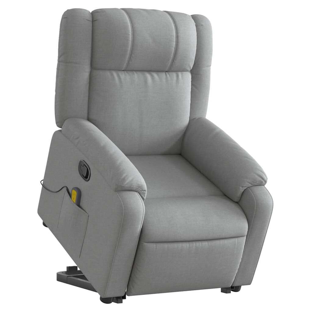 $453.59Sit back and drift away in this highly comfortable stand up massage recliner chair! Power lift function: This recliner chair for the elderly is equipped with an electric motor for the lifting-up function. Thanks to the function that pushes the entire chair up, you can easily stand without stressing your back and knees with a simple press of the button.Manual reclining function: This reclining chair has a handle on the right side. You can manually adjust the footrest and the backrest to any position as per your comfort with a simple pull of the handle. This feature allows for a maximum tilt of 135 degrees. Additionally, the backrest can go quickly back to the original place with an easy pull of the handle.Vibration function: The featured 6 massage points let you experience a better-targeted massage. Additionally, the included hand control allows you to pick different massage programs. The massage function is powered by the USB connector that requires a certified 5V USB power source (not included).Comfortable seat experience: The thickly padded seat, backrest, and wide armrests covered in fabric provide a cosy and warm sensation, making you feel embraced while seated. The fabric features a simple and clean look and is breathable and durable.Convenient side pocket: This armchair has a side pocket for your remote control or keeping your essential items within easy reach.Solid and stable frame: The frame made of wood and metal provides a strong structure and stability. This reclining armchair is comfortable and durable.