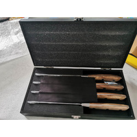 $75.59This set includes 4 pieces of fine edge slicing and carving knives with an upswept boning tip. The upward curved tip is designed to assist in separating meat from the bone. The gradually cambered long blade is most efficient at pull cutting through boneless sections of meat.