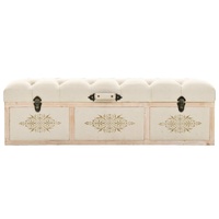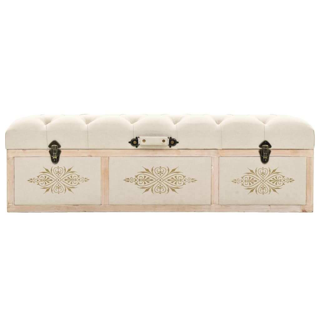 $247.94This elegant storage bench will make a unique addition to your decor with its classic design. It can also be used as a pouffe or storage box. The comfortable and beautiful bench is made of MDF and solid firwood. It has a padded seat that is upholstered in a modern fabric. It has ample space for keeping a host of different items out of sight yet within reach. Thanks to its durable handles, the storage box can also be easily moved in your room.