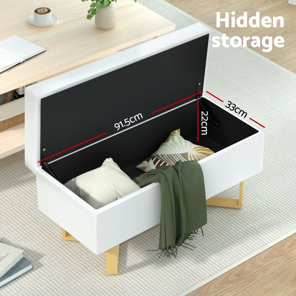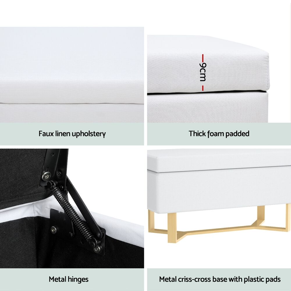 $103.49This Artiss faux linen storage ottoman features a sturdy plywood and MDF frame, high-resilience foam padding, and ample storage. With durable metal hinges, a metal criss-cross base with plastic pads, and easy assembly, it combines style and functionality.