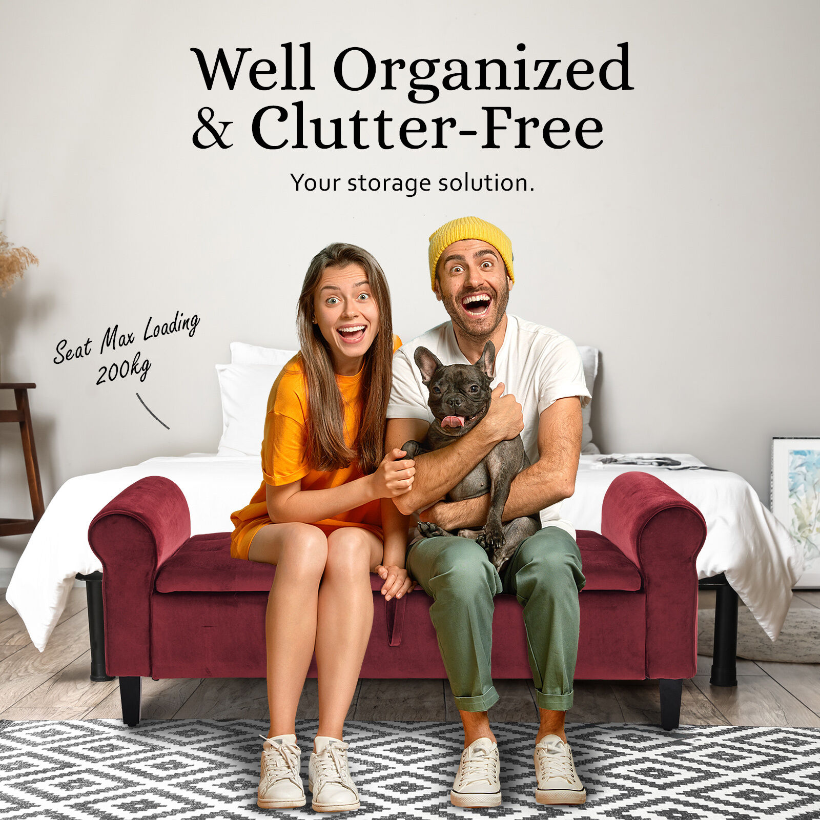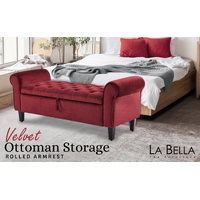 La Bella Storage Ottoman Bench Seat 132cm Chest Arm Couch Stool Velvet - Red