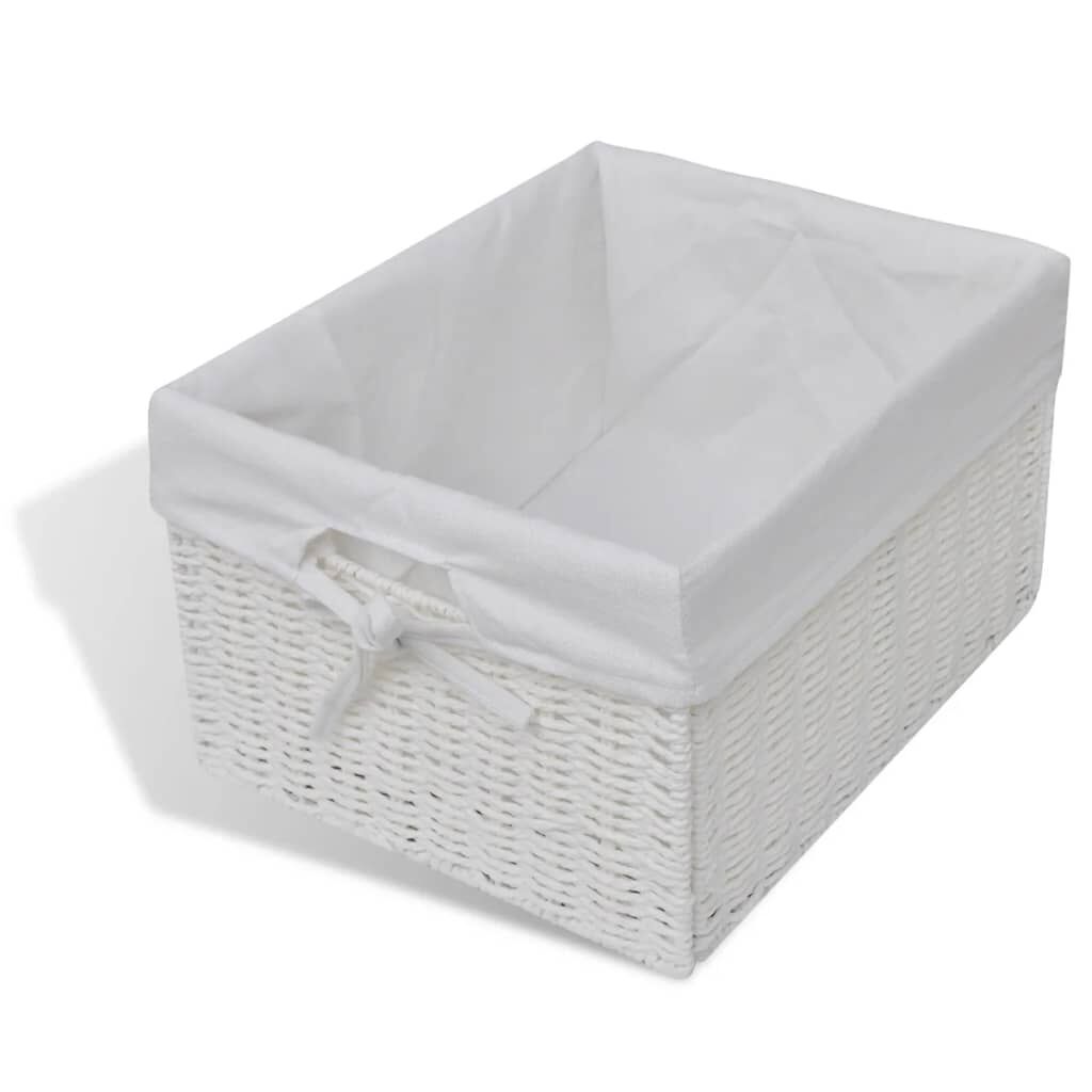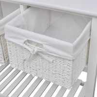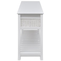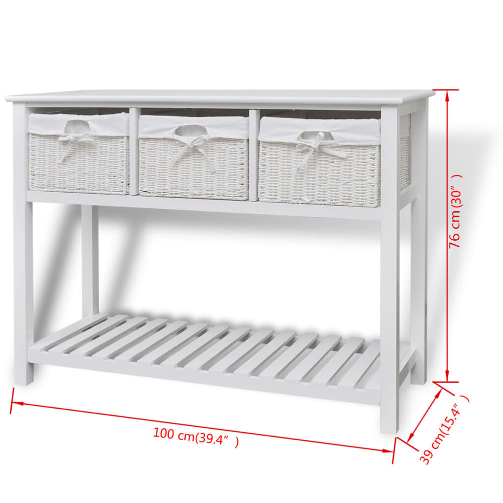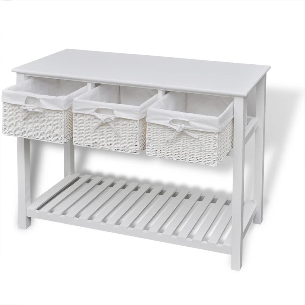 $143.99This understated romantic white storage sideboard with woven baskets presents an excellent storage solution for the bedroom, hallway or bathroom. This storage unit, made of high-quality material, has three woven baskets and a slatted bottom tier. Each basket has a washable fabric liner. The raised floor slats help keep the items stored on them ventilated and dry. This wooden storage side table will become one of your favourite furnishings!