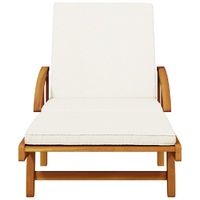 $575.66Relax and enjoy the outdoors in these comfortable sun loungers! Robust and stable: Solid acacia wood is known for its strength and durability. Its diverse colours and unique grain patterns give it an attractive appearance. With good stability and resistance to weathering, it is ideal for crafting indoor and outdoor furniture.Manual reclining function: This reclining chair is specially designed with 5 reclining positions so that you can adjust the backrest and footrest manually as per your comfort.Comfortable seat experience: This outdoor furniture, complete with thickly padded cushions, offers a comfortable seating experience.Convenient pull-out table: This outdoor furniture features a convenient pull-out table, providing a convenient spot to keep your essentials within easy reach.Well-ventilated and pooling prevention: The slatted design promotes optimal airflow and effectively prevents water pooling, ensuring a dry and comfortable seat.Removable and washable cover: These seat cushions feature removable covers for easy washing and maintenance.Easy movement: You can move the outdoor lounger around easily, thanks to its lightweight design and wheels. Good to know:To make sure your outdoor furniture stays beautiful, we recommend protecting it with a waterproof cover.