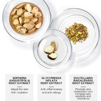 Exotic Plant Extracts - carica papaya fruit extract (promote metabolism remove fine lines), sophora angustifolia root extract (enhance anti-oxidation), glycyrrhiza inflata root extract (anti-inflammatory and anti-allergy) and scutellaria baicalensis root extract (promote skin metabolism and elasticity)
