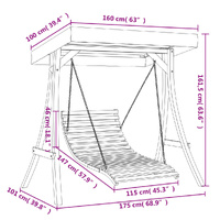 $361.94This wooden swing bed with canopy is the perfect choice if you're looking for relaxation and enjoyment in outdoor spaces. Solid spruce wood frame: This porch swing bed is made of solid spruce wood. Solid spruce wood is a lightweight, stable, rot-resistant softwood. It has a fine, even texture, and a consistently straight grain. The teak finish gives it a dark wood look.Ergonomic backrest: The backrest of the hanging bed is ergonomically designed, bringing you optimum comfort while lying.Soothing rocking motion: Relax by sitting comfortably while enjoying a calming, gentle rocking motion.Canopy design: The outdoor swing bed is equipped with a canopy to protect you from direct sunlight when you read or relax on summer days. Good to know:The wood is a natural product and can show imperfections.