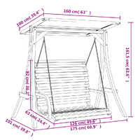 $425.93This wooden swing bench with canopy is the perfect choice if you're looking for relaxation and enjoyment in outdoor spaces. Solid spruce wood frame: This hanging bench is made of solid spruce wood. Solid spruce wood is a lightweight, stable, rot-resistant softwood. It has a fine, even texture, and a consistently straight grain. The teak finish gives it a dark wood look.Ergonomic backrest and armrests: The backrest and armrests of the garden swing bench are ergonomically designed, bringing you optimum comfort while sitting.Soothing rocking motion: Relax by sitting comfortably while enjoying a calming, gentle rocking motion.Canopy design: The bench swing is equipped with a canopy to protect you from direct sunlight when you read or relax on summer days. Good to know:The wood is a natural product and can show imperfections.