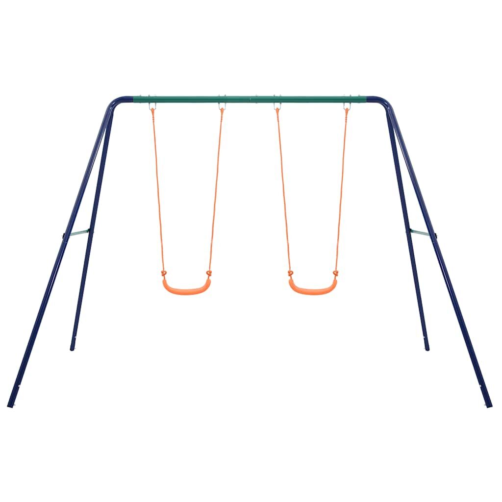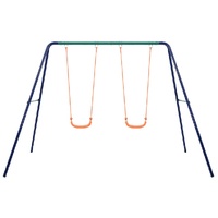 $139.45Playing on this swing set will be your children's favourite outdoor activity! Maximum 2 kids can play while enjoying a fresh breeze or a sunny day simultaneously. This swing set consists of a sturdy steel A-frame with 2 single swing seats. Thanks to its sturdy steel frame and plastic seats, the set is extremely durable and weather-resistant. It is also easy to assemble. All swings are securely fixed to the sturdy A-frame crossbar with sturdy brackets, bolts, hooks and ropes. The ground pins and all the necessary installation accessories are included in the delivery.