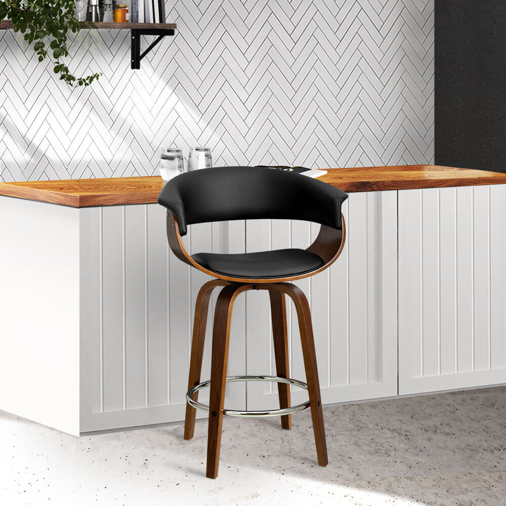 Wood, metal and deluxe PU leather in total harmony to create a luxe feel. Meticulously crafted with solid plywood with a stunning walnut finish for the frame, the bar stool features a thick padded faux leather seat that rotates fully, a mid-height backrest which provides ample support while the anti-slip floor protectors at the bottom of the legs ensure no scratches are left on the floor.