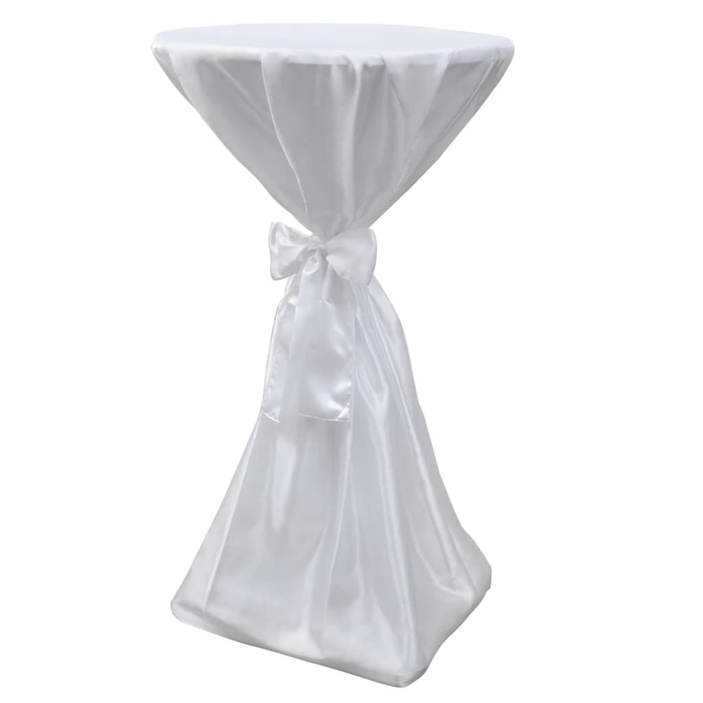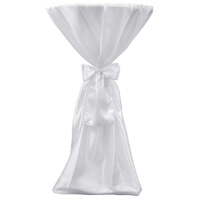 $54.14This white table cover with a full-length cut is suitable for round bar tables in weddings, parties, banquets or other occasions. The cover is tied with a supplied ribbon and you can make a bowknot to make it more elegant. The cover is made from classy satin fabric, which is easy to clean. Delivery includes 2 pcs of table covers.